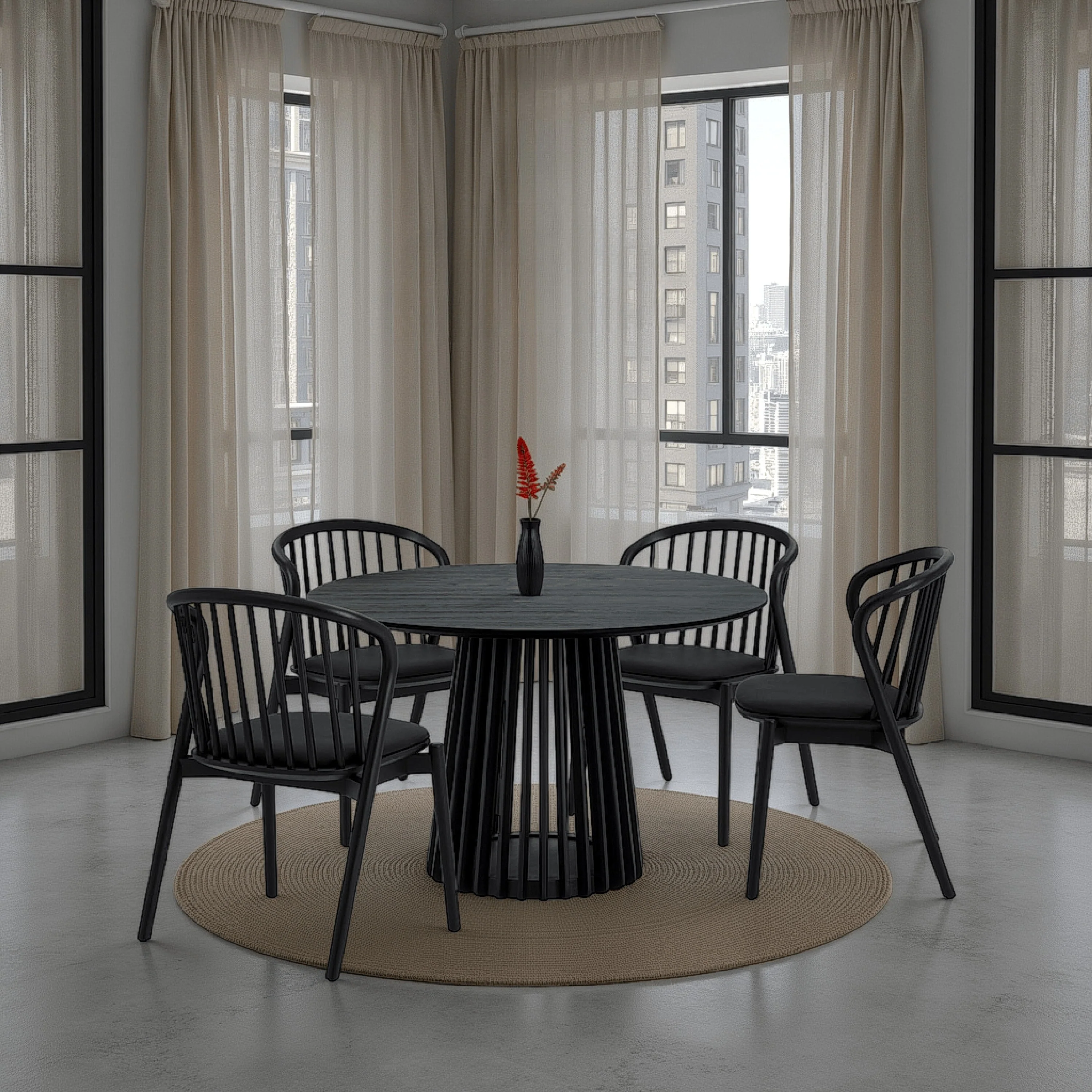 Modrest Jenna Modern Black Marble & Black Mango Round Dining Table