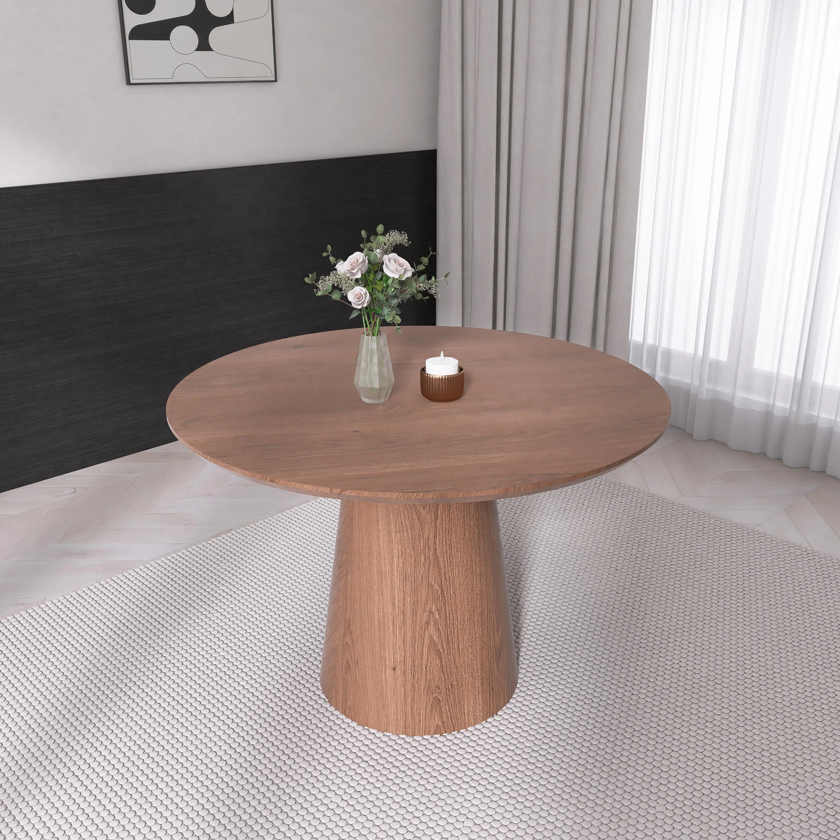 43 Inch Wooden Circular Dining Table, Modern Minimalist Round Table