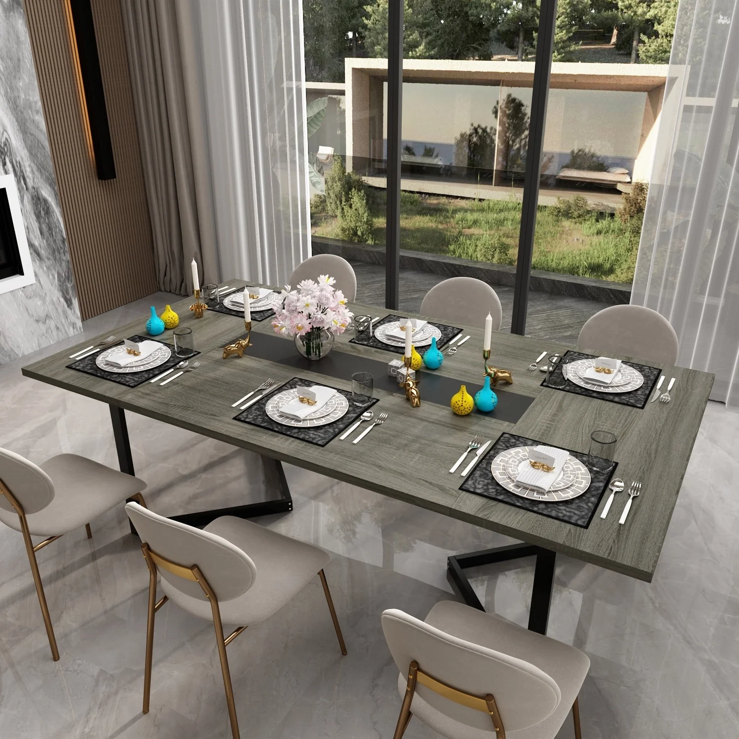 63''-94'' Kitchen Large Extendable Dining Table for 4-8 People