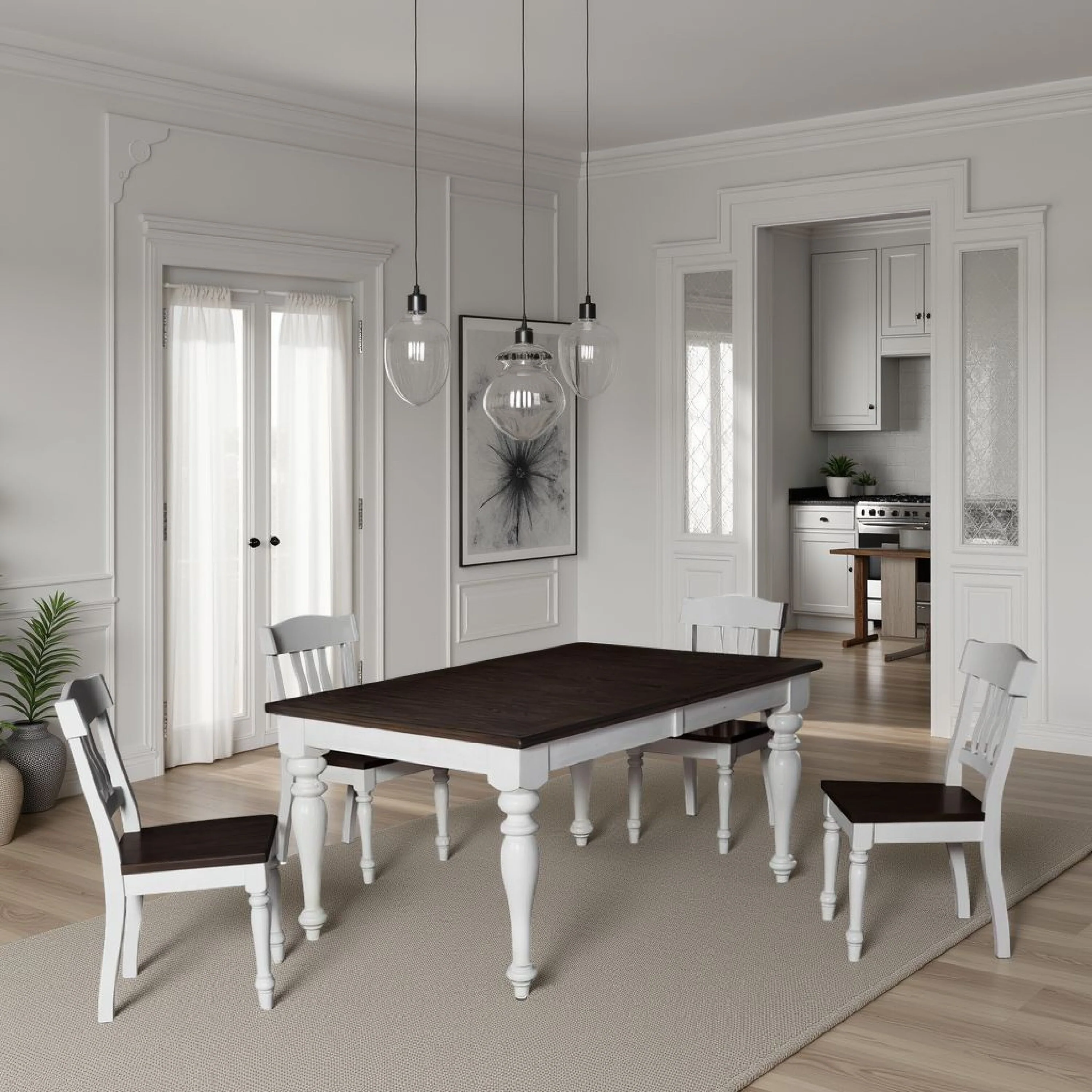 Farmhouse Kitchen 63 Dining Table for 4-6 - N/A