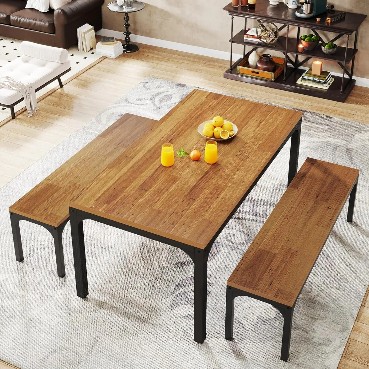 3 Pieces Rectangular Dining Table Set for 6 People