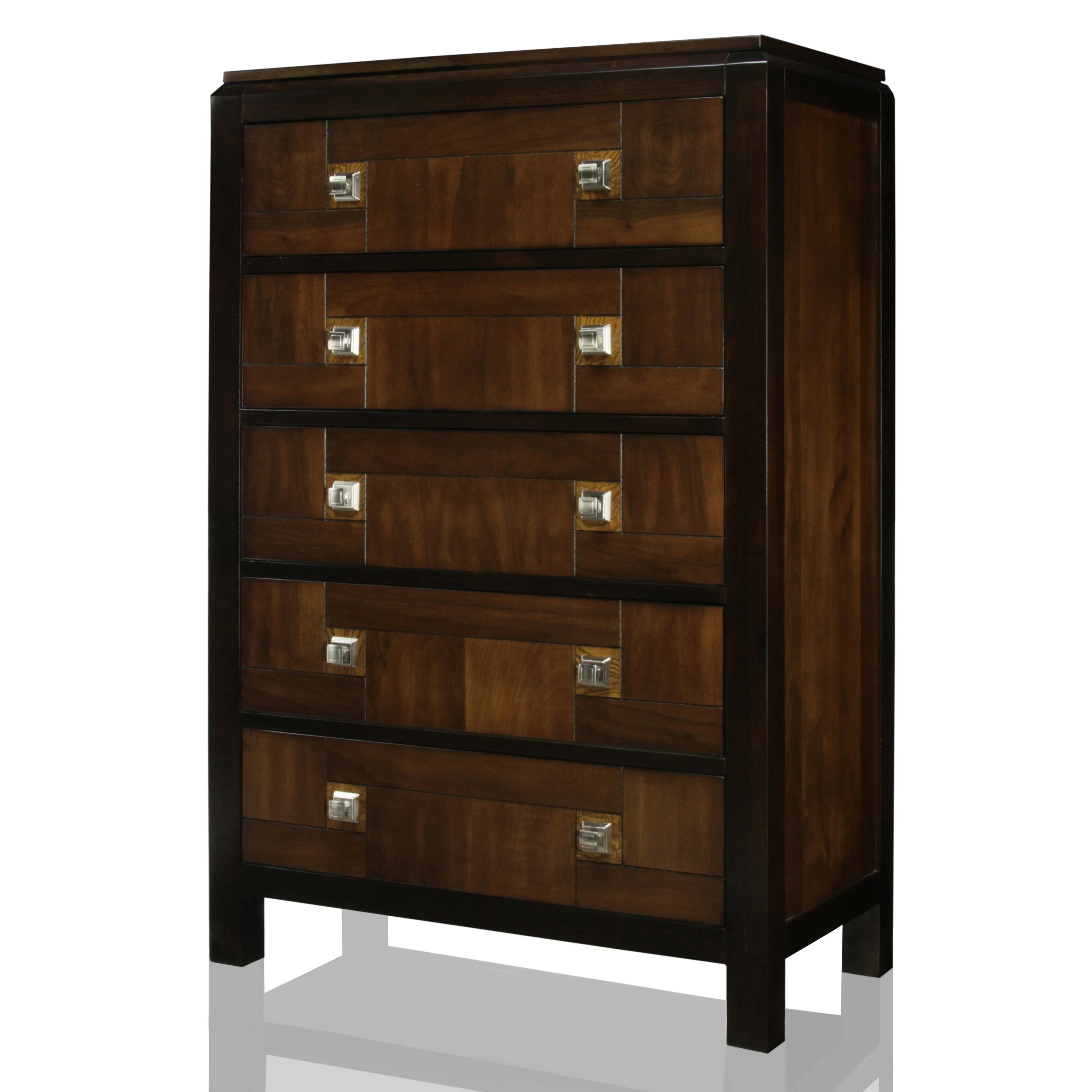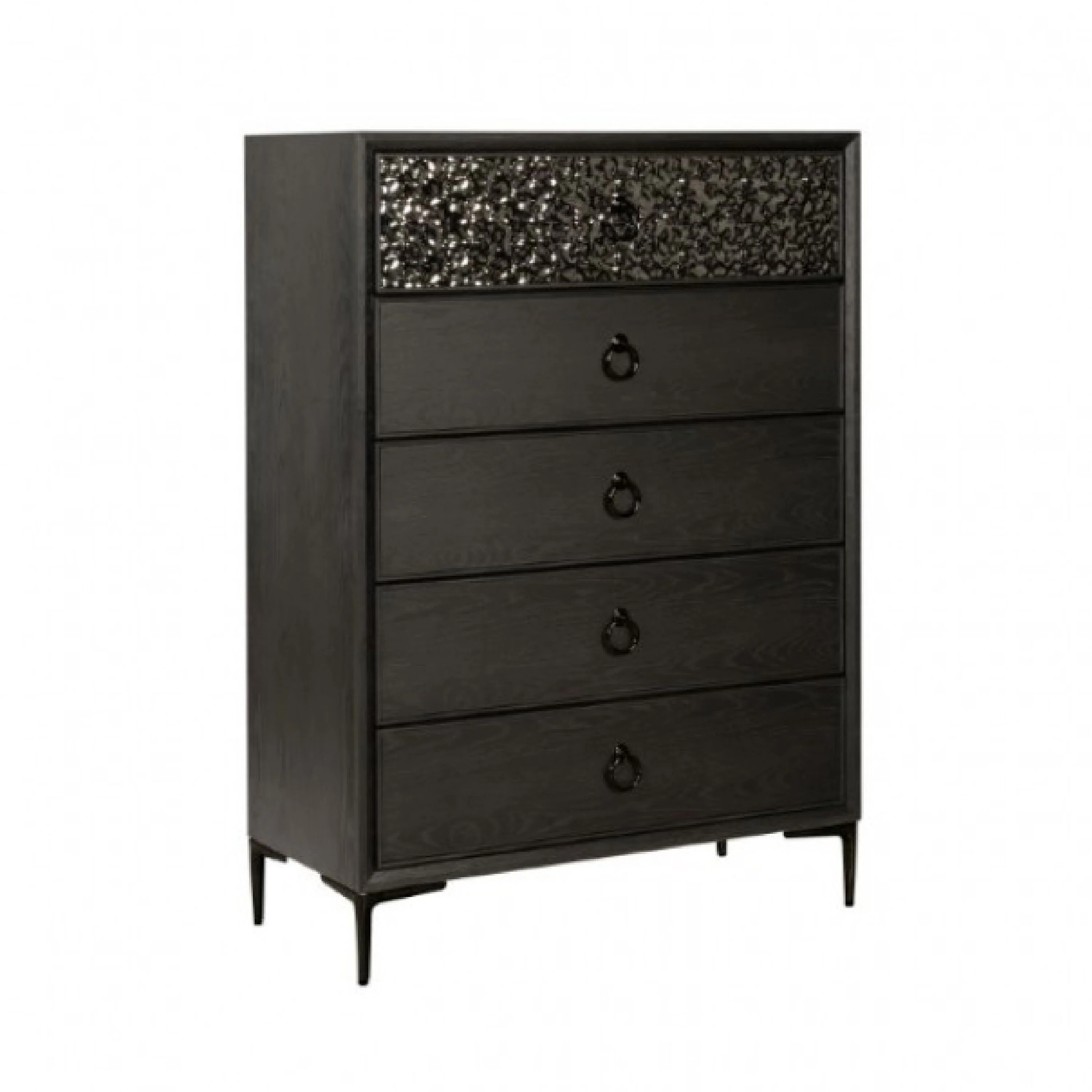 Kaira Tall Dresser Chest, 5 Drawers, Textured Metal, Espresso Brown