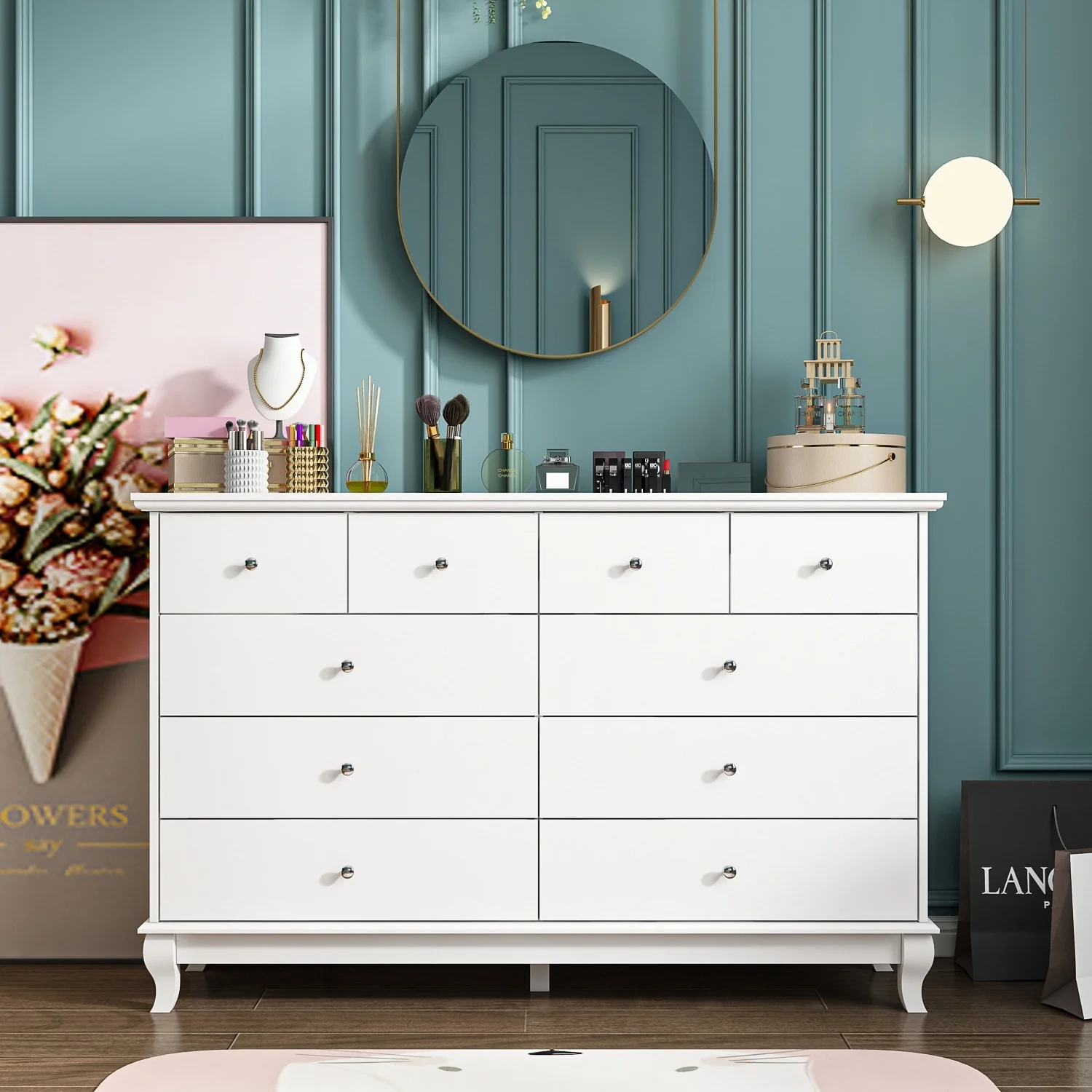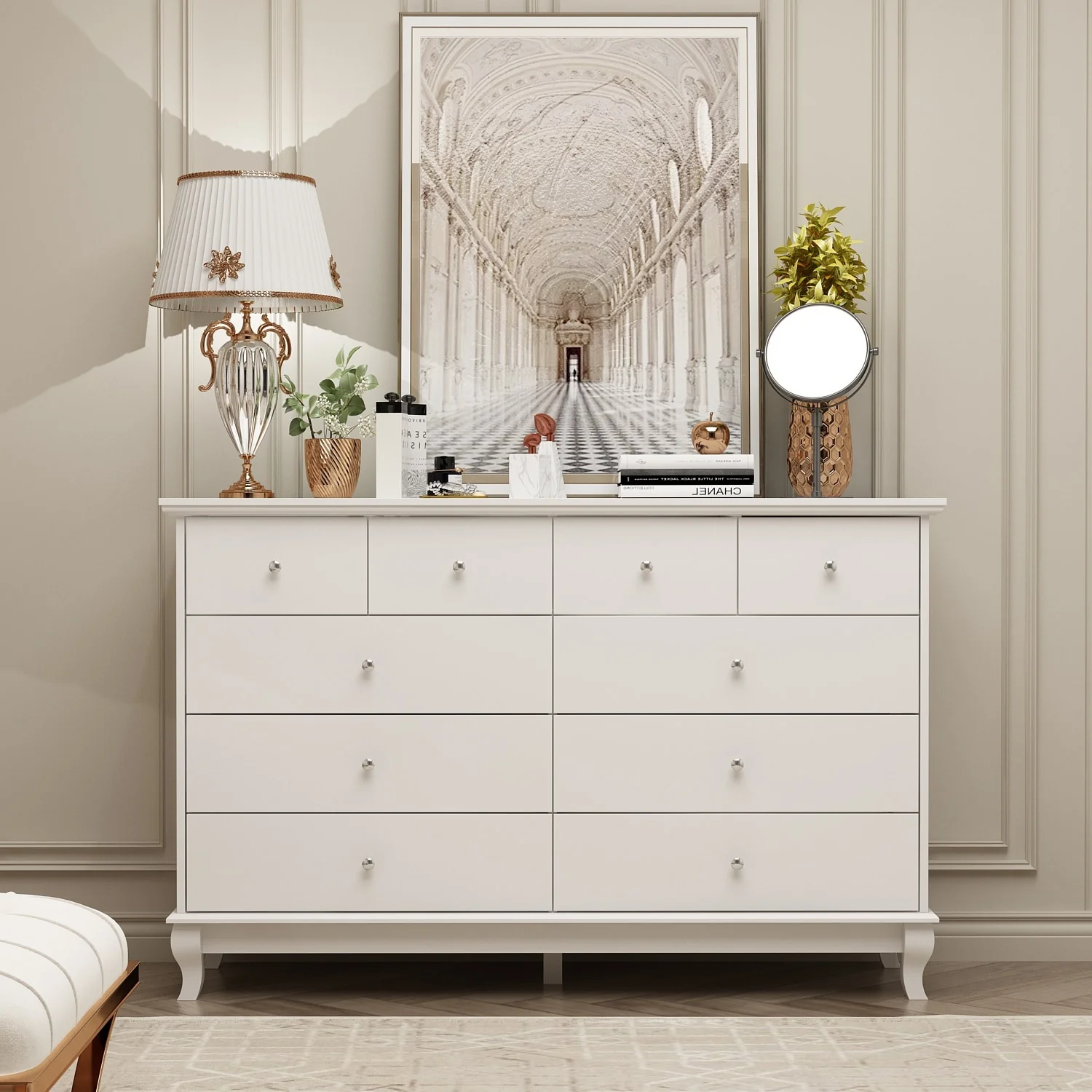 10 Drawer Double Dresser for Bedroom White Dresser Wide Storage