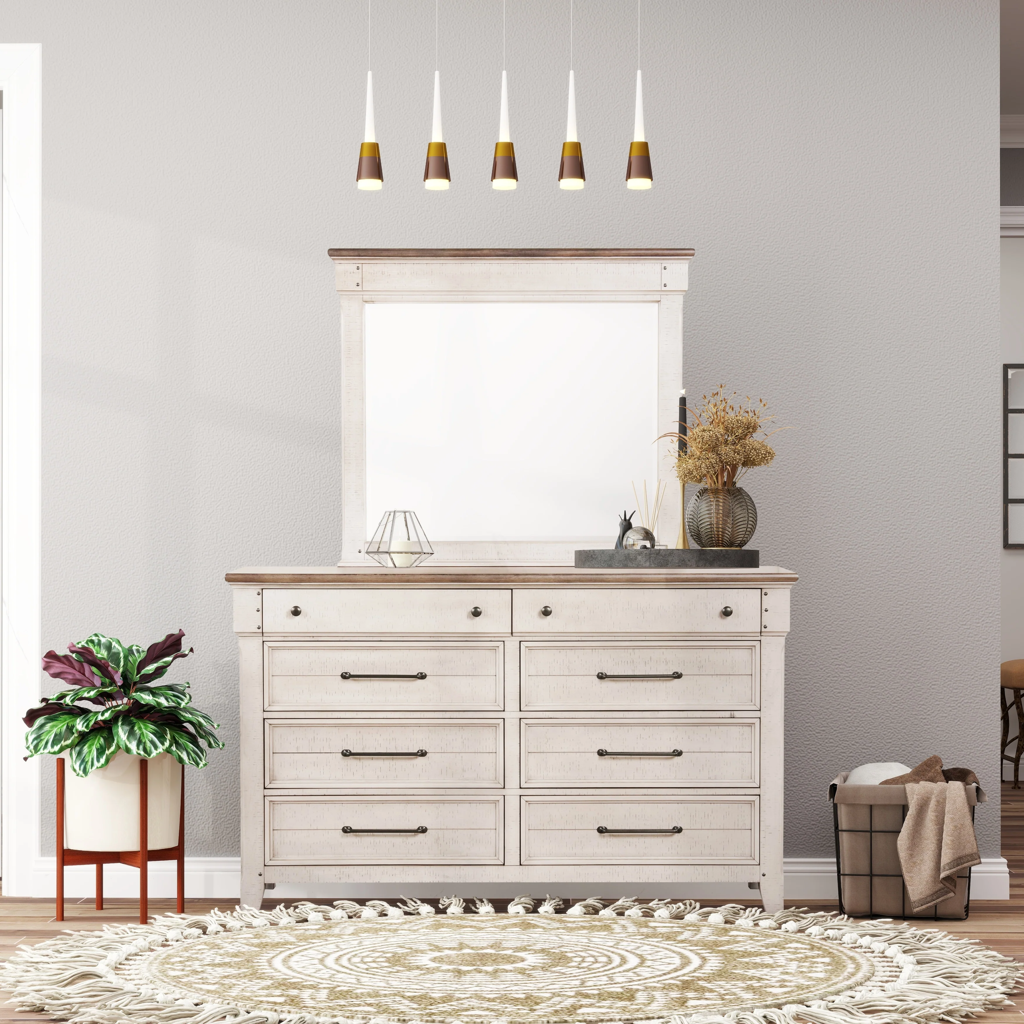 Zirano Dresser, Mirror and Pouf
