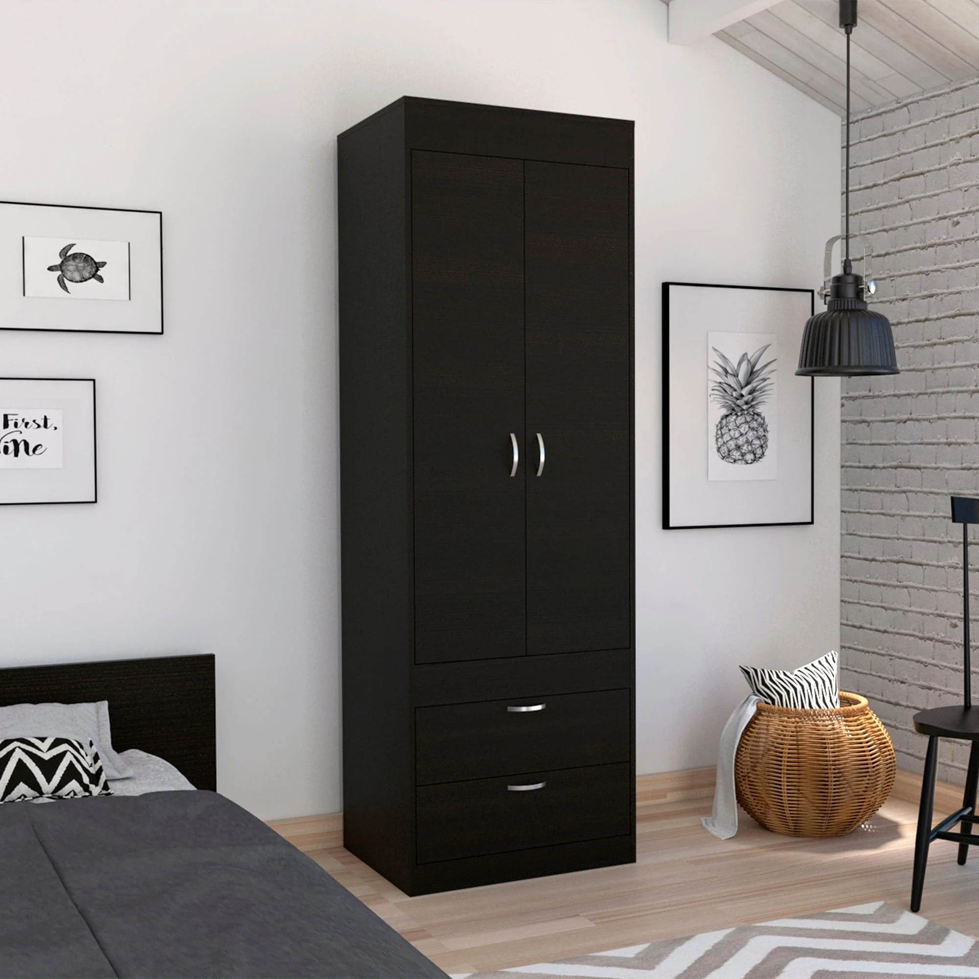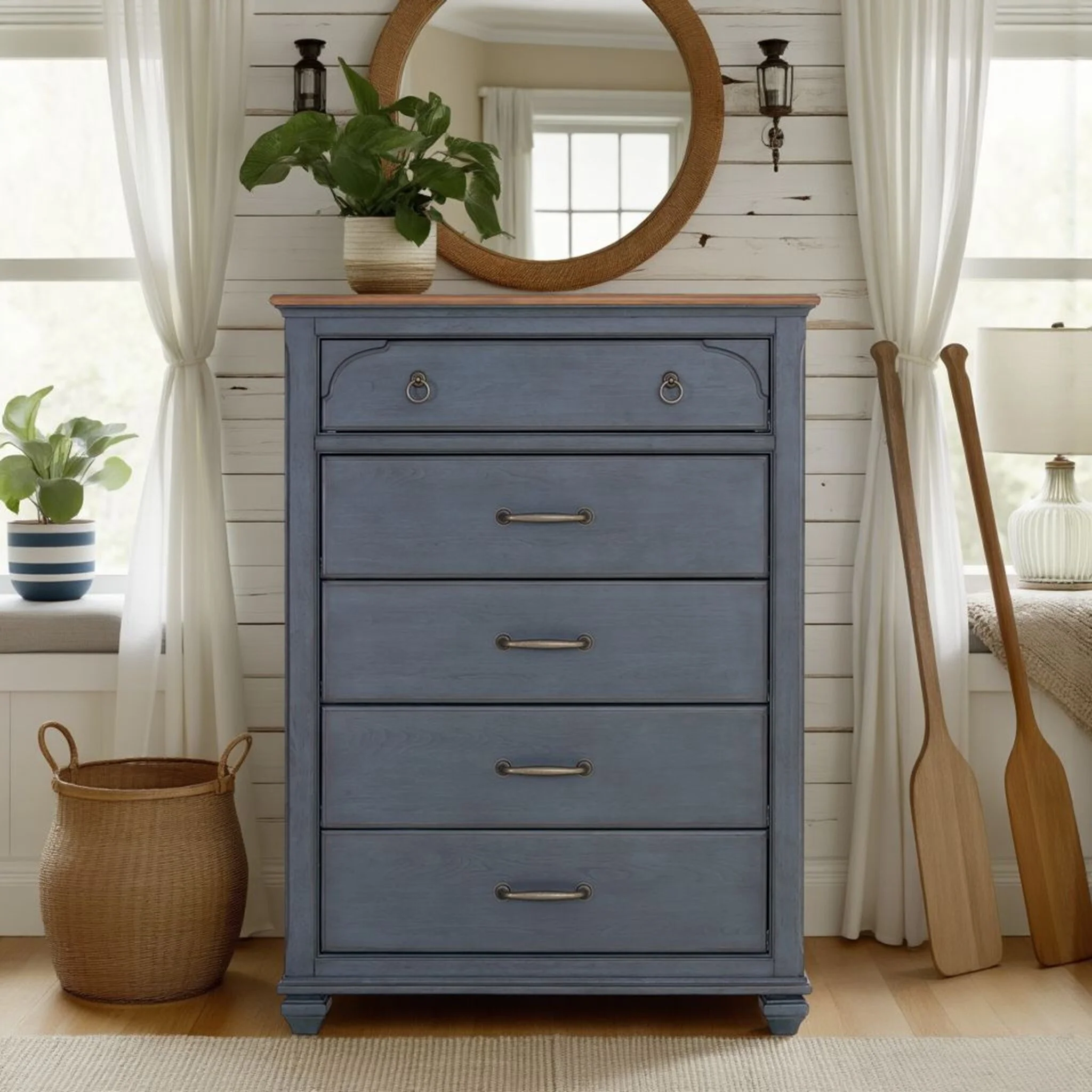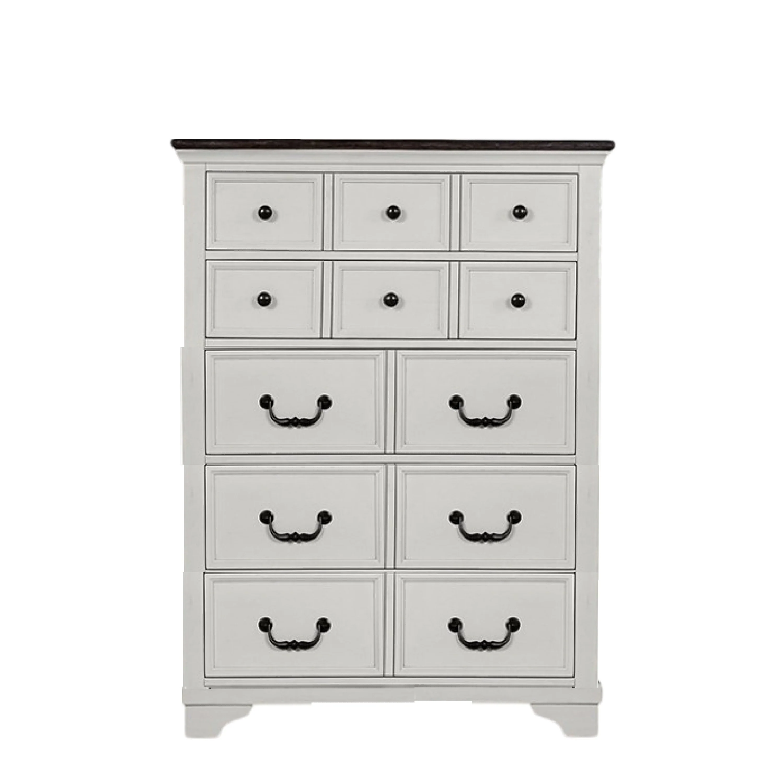 Hamps Tall Dresser Chest, 5 Drawers, White, Dark Brown Solid Wood