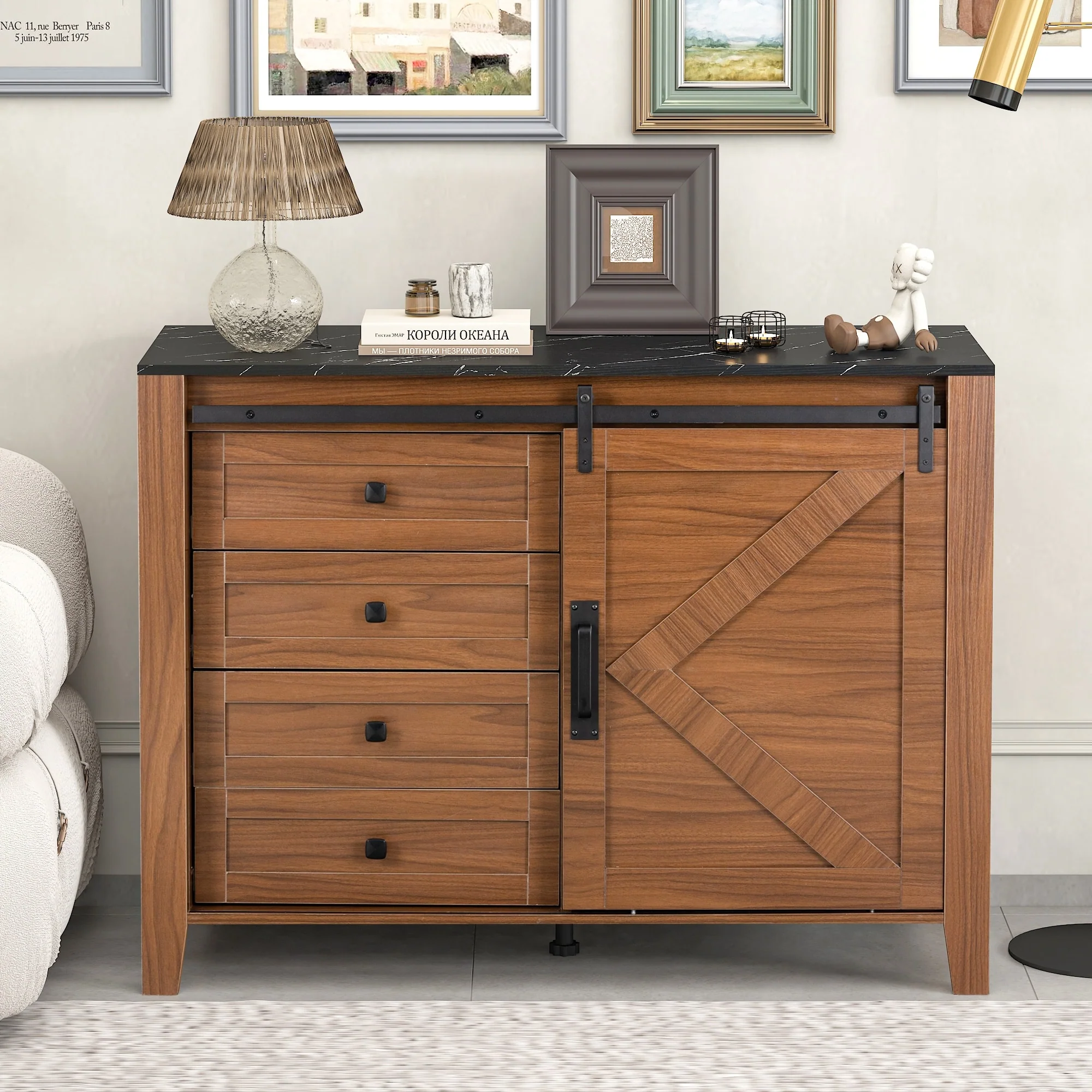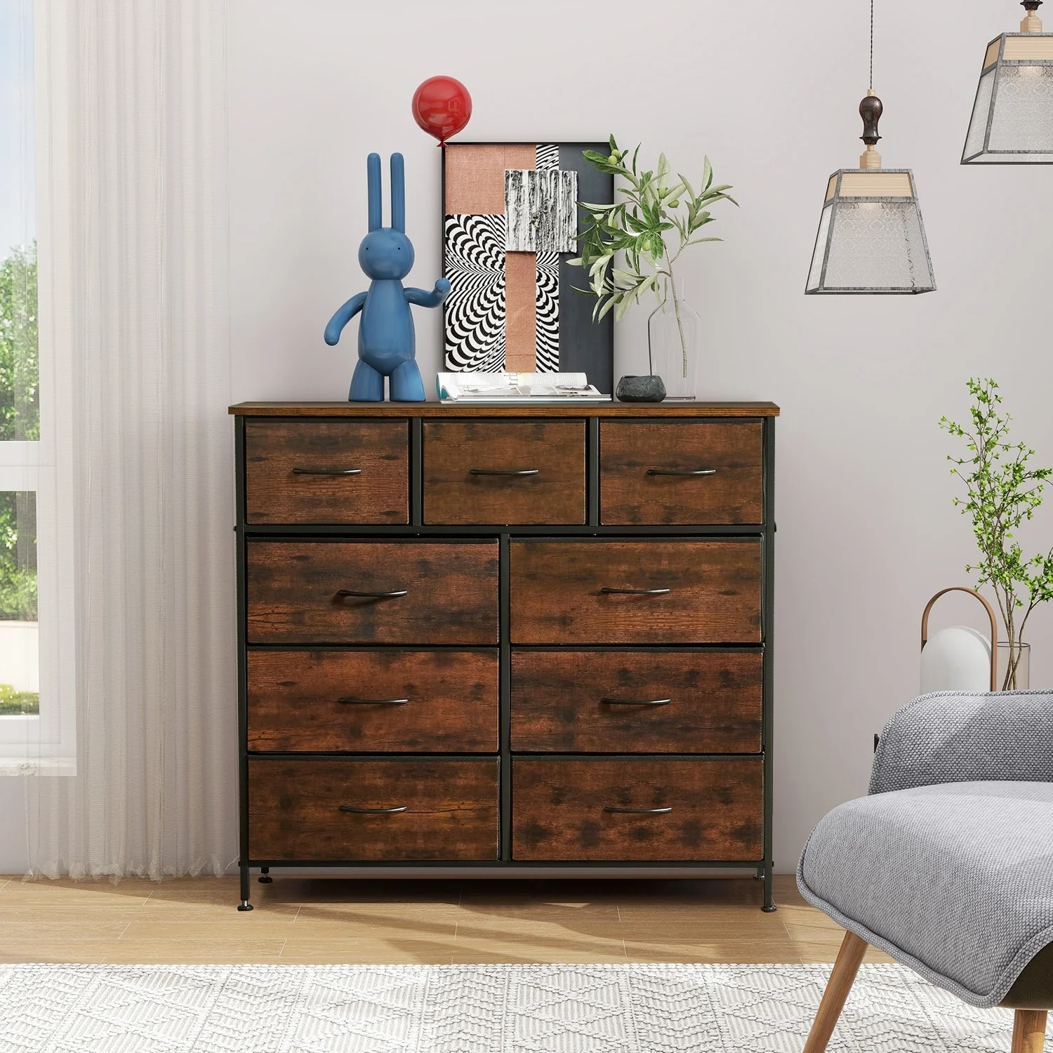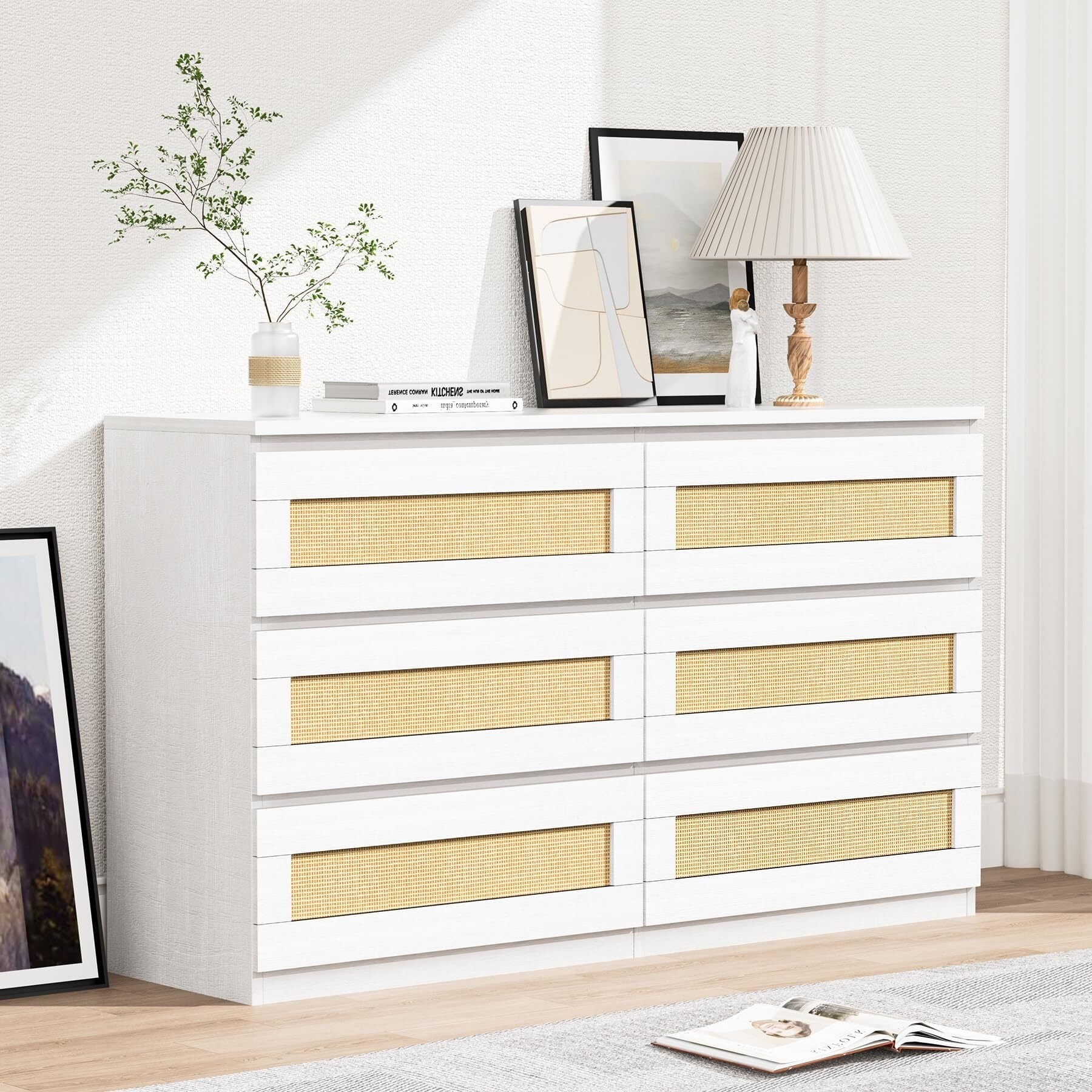6 Drawer Dresser for Bedroom, 55” Rustic Wood Chest of Drawers