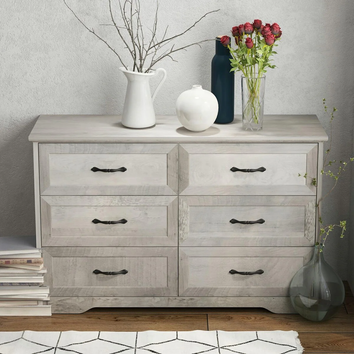 Natural Large Capacity 6 Drawers Dresser, Cabinet for Bedroom