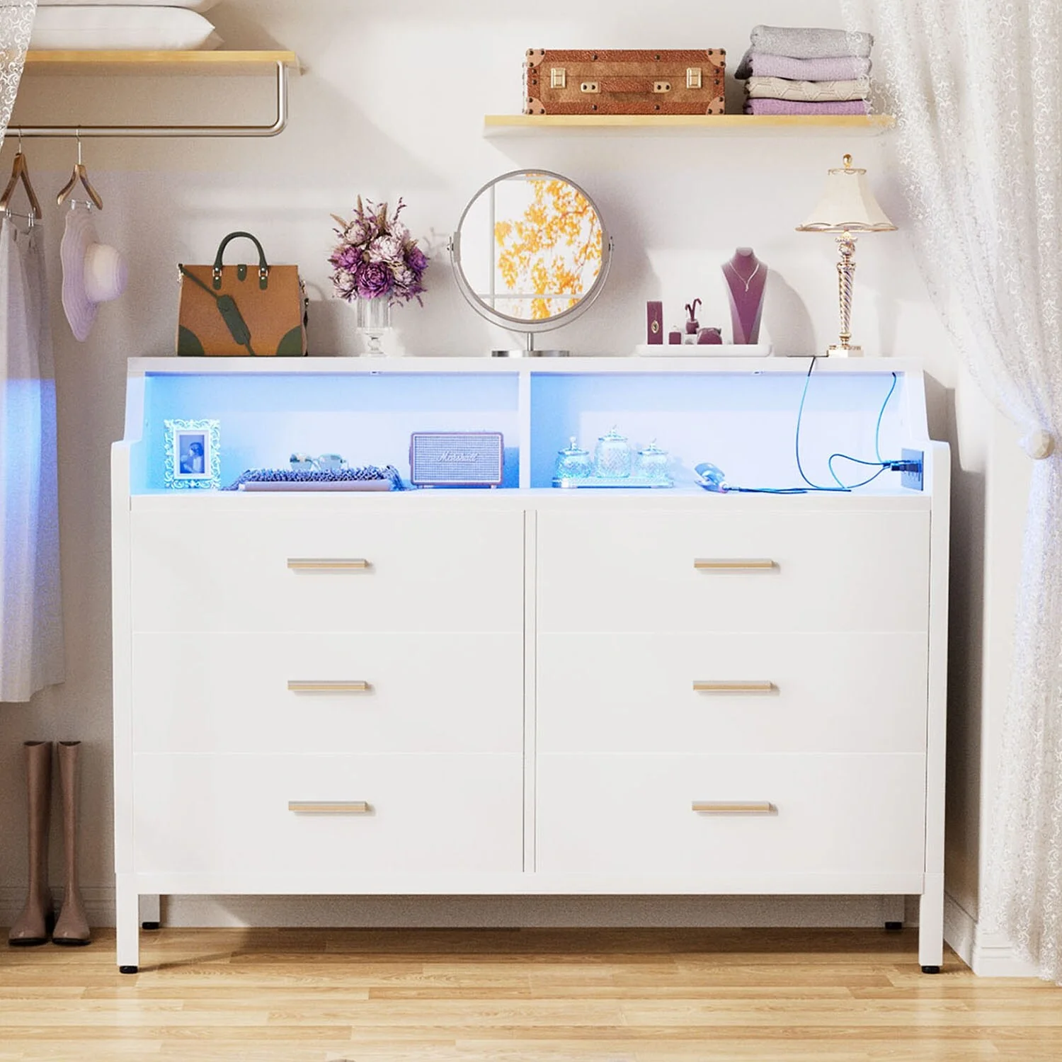 6 Drawer Larget Chest&Dresser With Golden Metal Handles