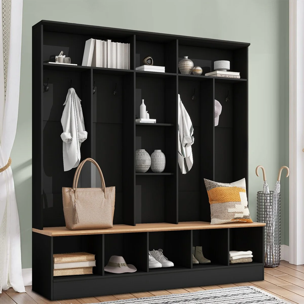 78''H Modern Hall Tree with Bench,13 Compartments and 6 Hooks