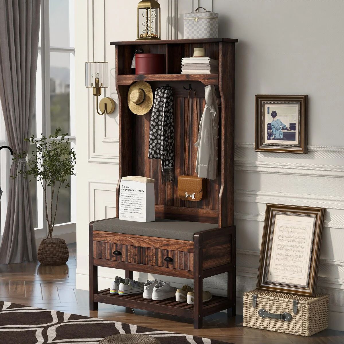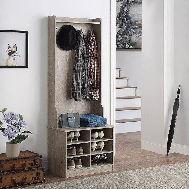 Hall Tree Coat Rack with Shoe Bench for Entryway