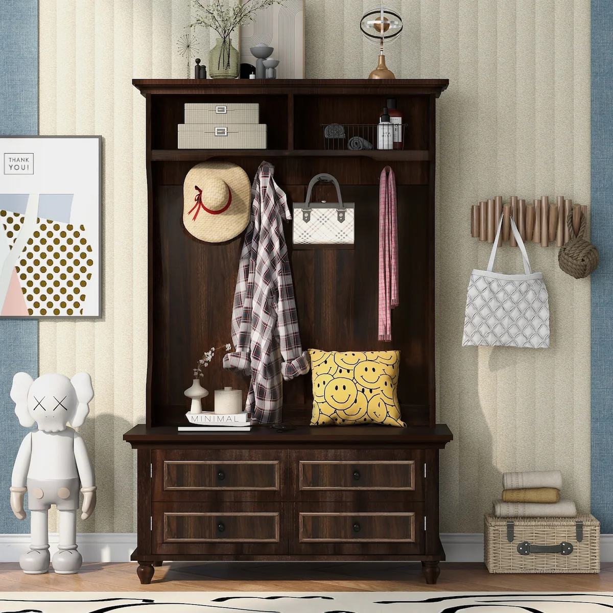 4 in 1 Hall Tree Shoe Bench with Storage,Coat Rack