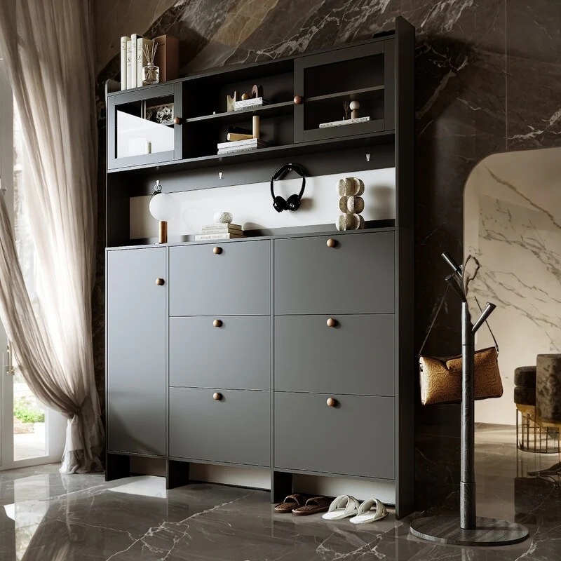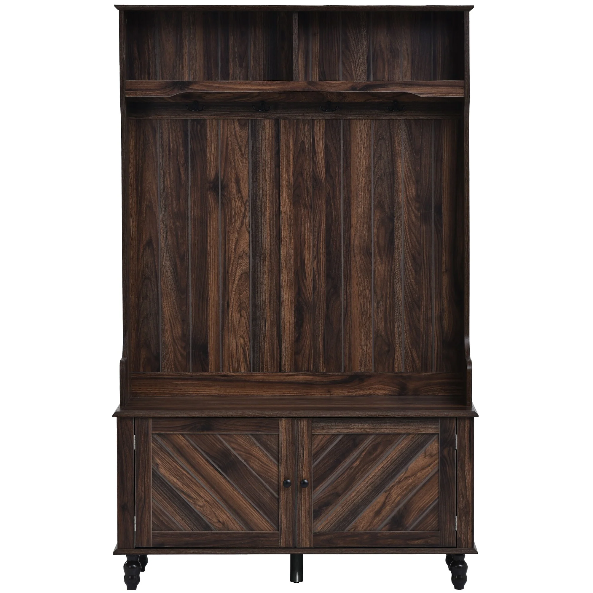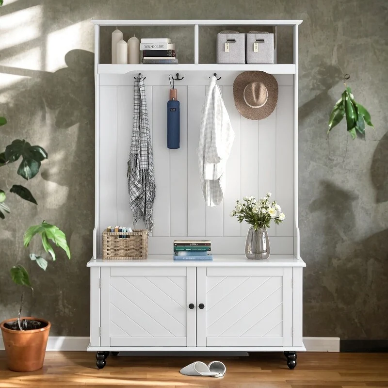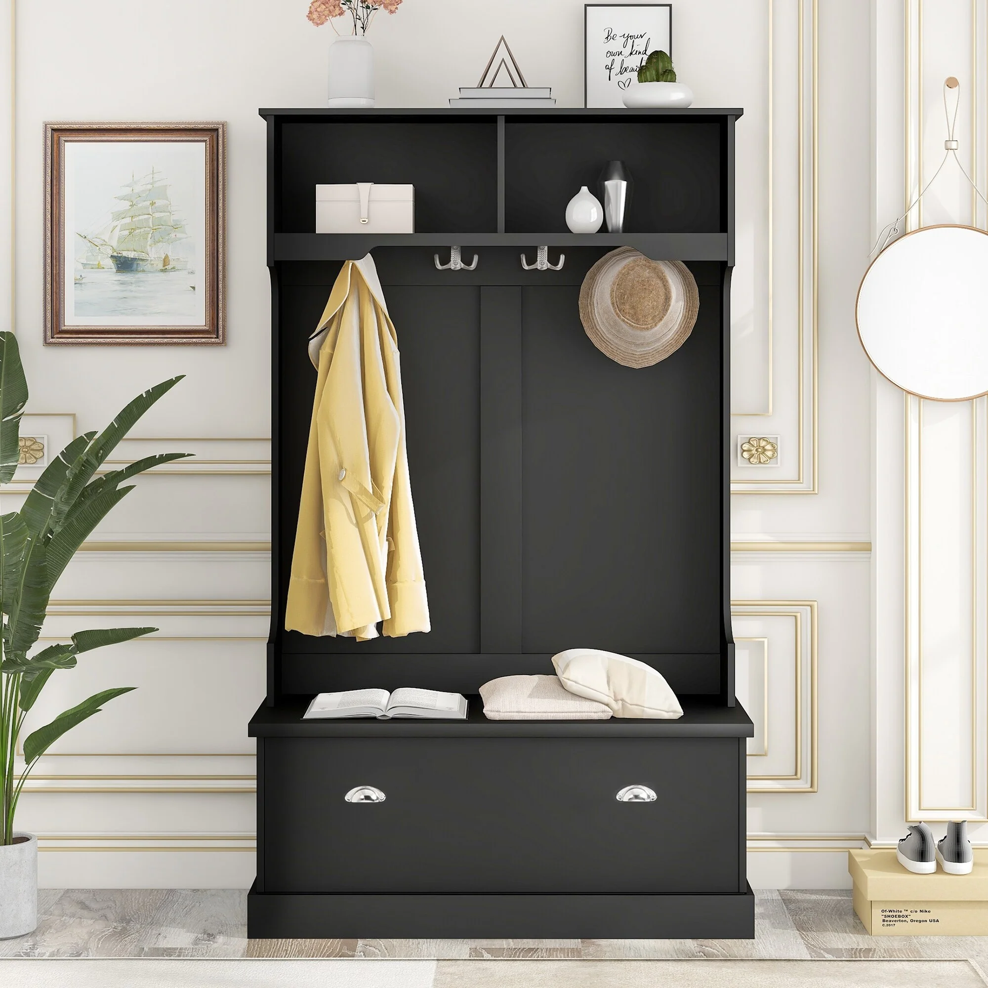 Modern Adjustable Shelves Hall Tree with Flip-Up Bench