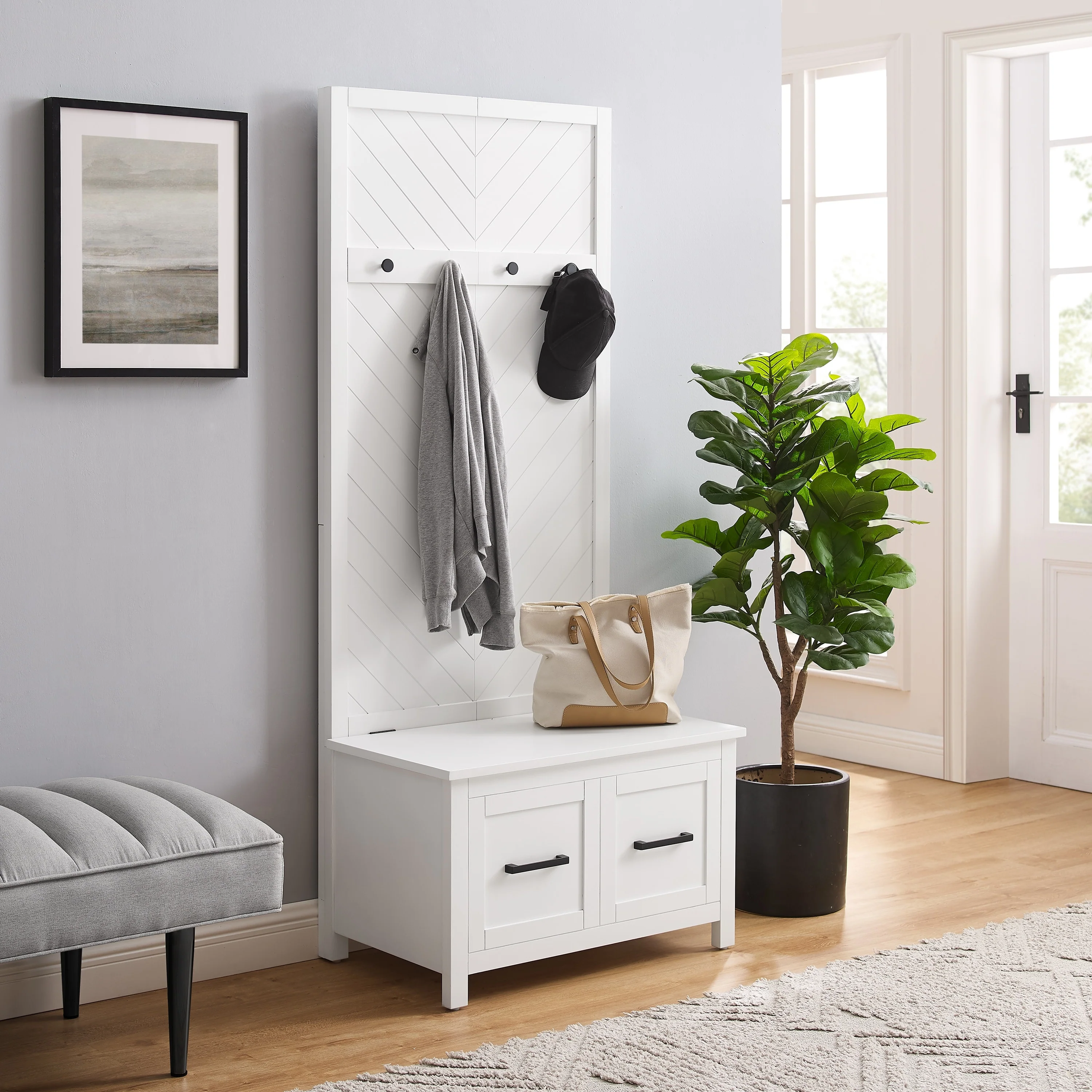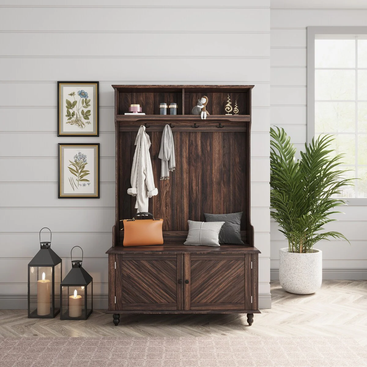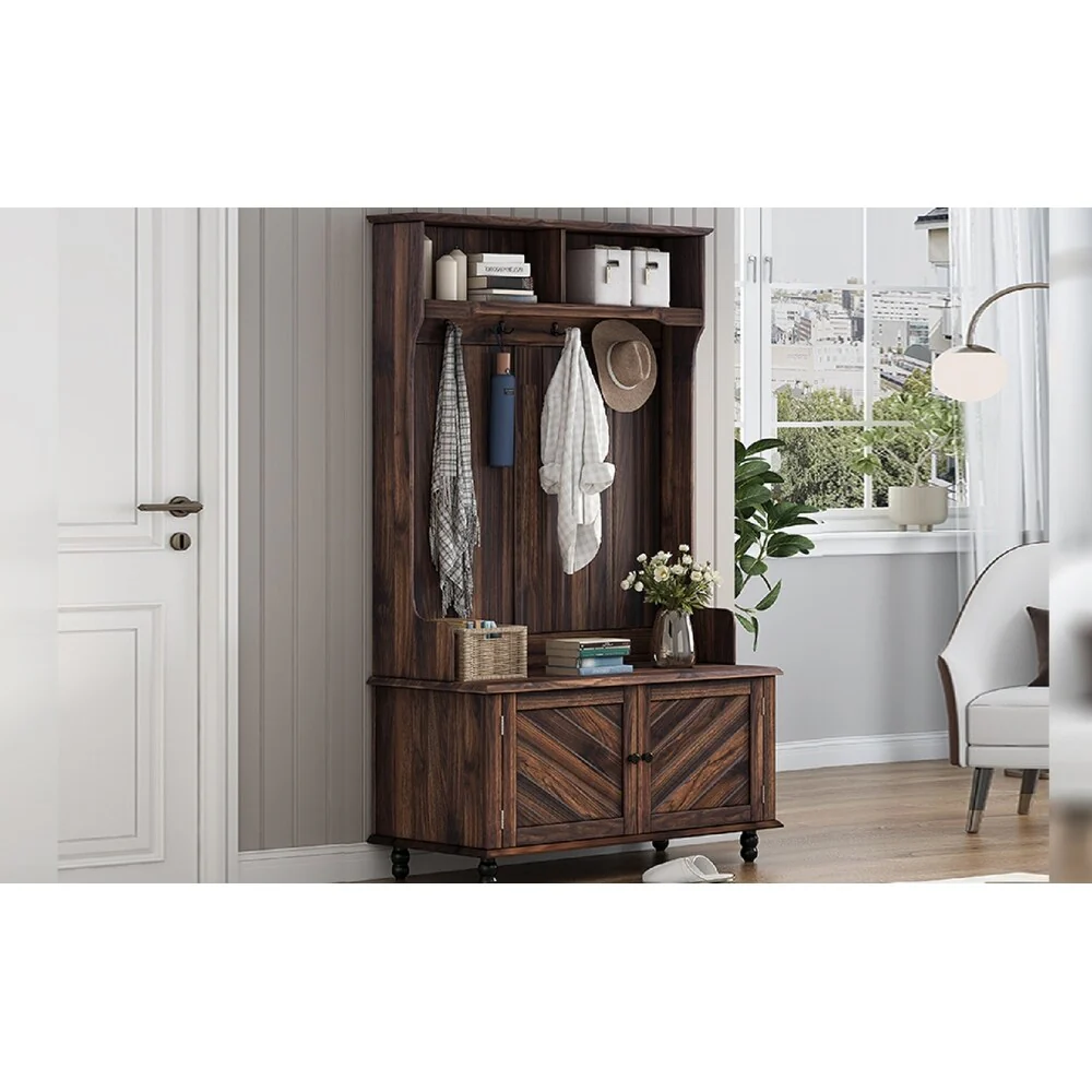 Hall Tree Coat Rack with Entrance Shoe Bench