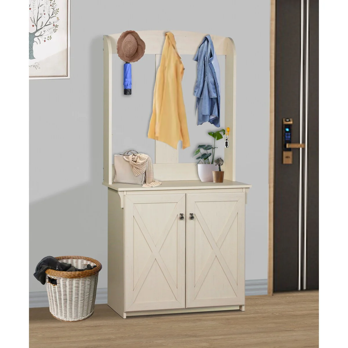 Rattan Hall Tree With Shoe Cabinets