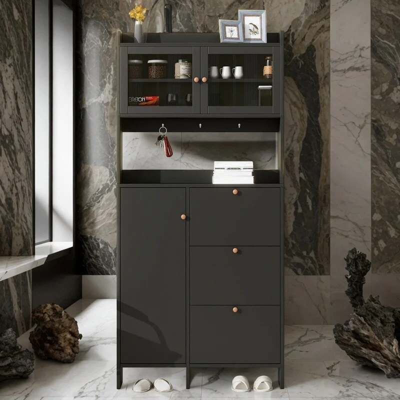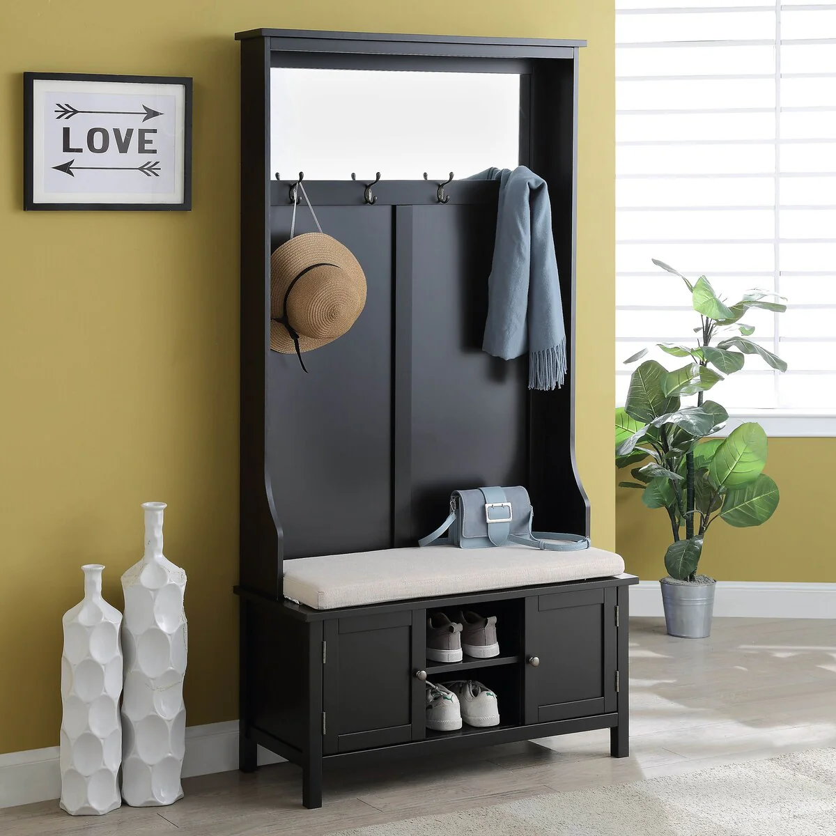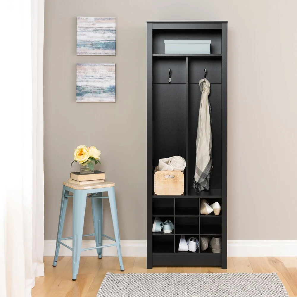 Black Space-Saving Entryway Organizer with Shoe Storage