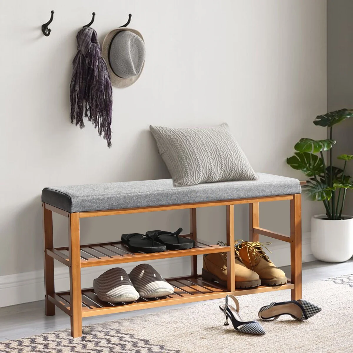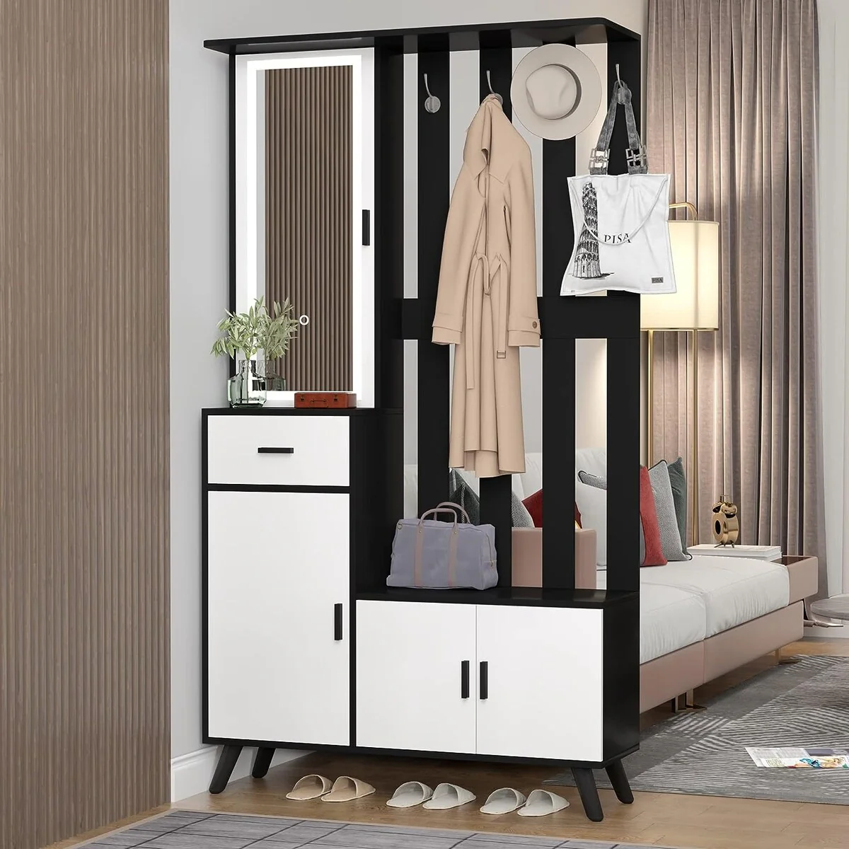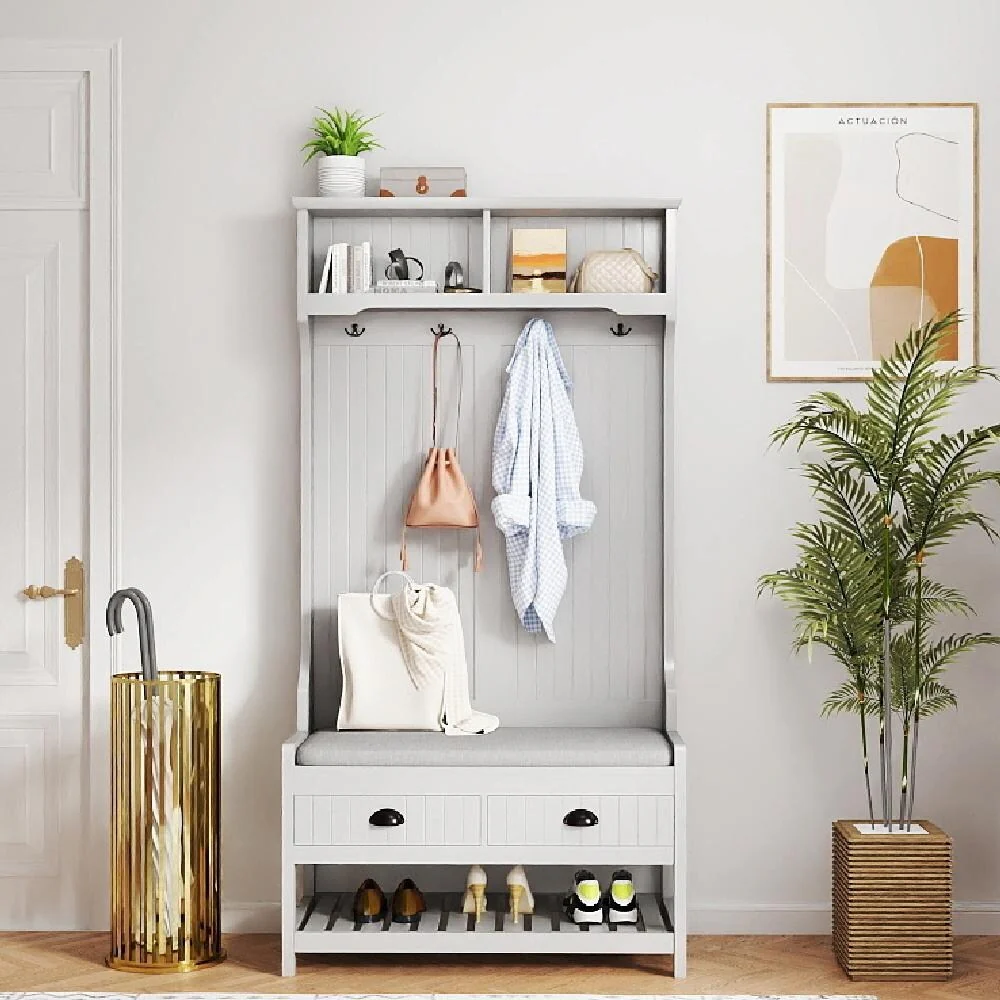 Entryway Bench with Shoe Storage Hall Tree with Mirror Cabinet