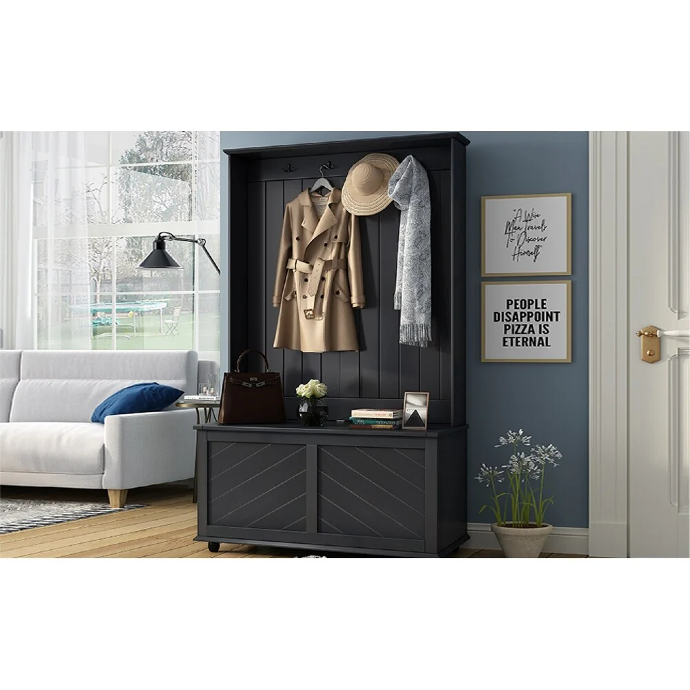 Entryway Hall Tree with 4 Hooks, Coat Hanger, Storage Bench