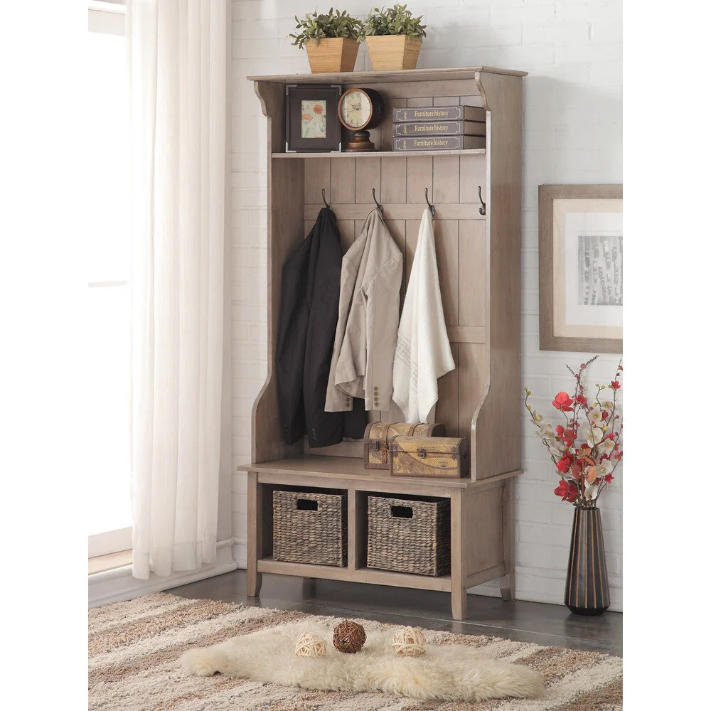 Carolyn Farmhouse Brown Distressed Wood Hall Tree