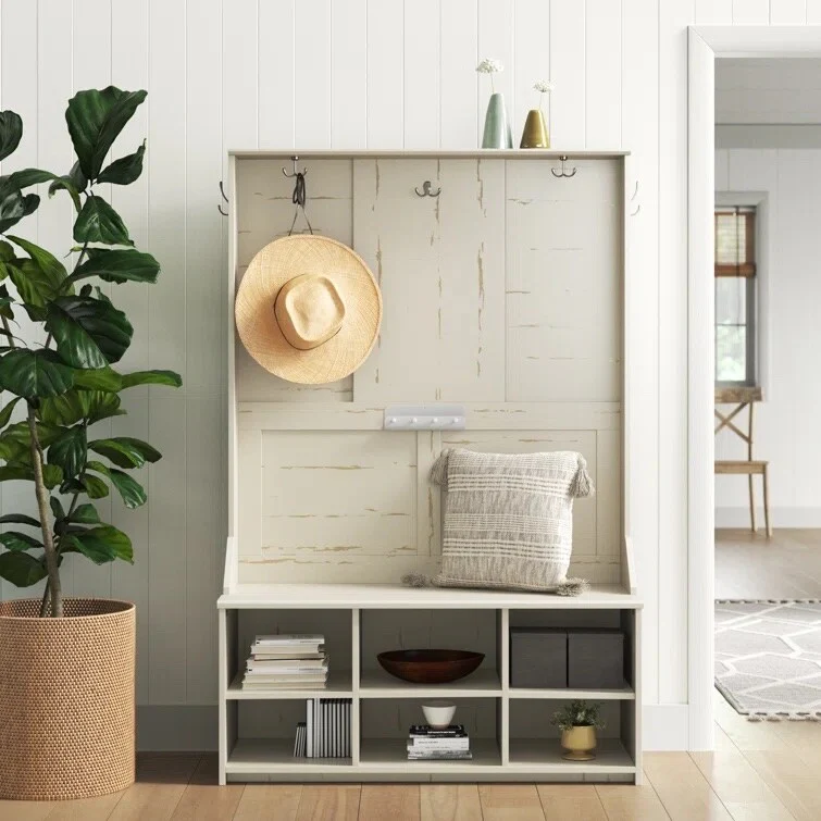 Saint Birch Salisbury Antique White Hall Tree and Shoe Bench
