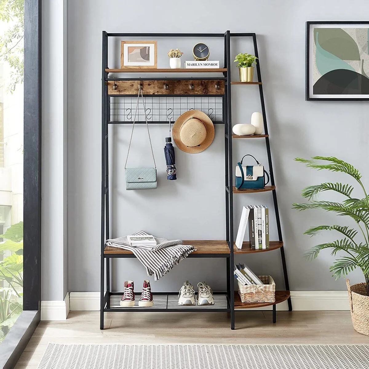 Homestar Black-finished Wood and Powder-coated Metal Hall Tree