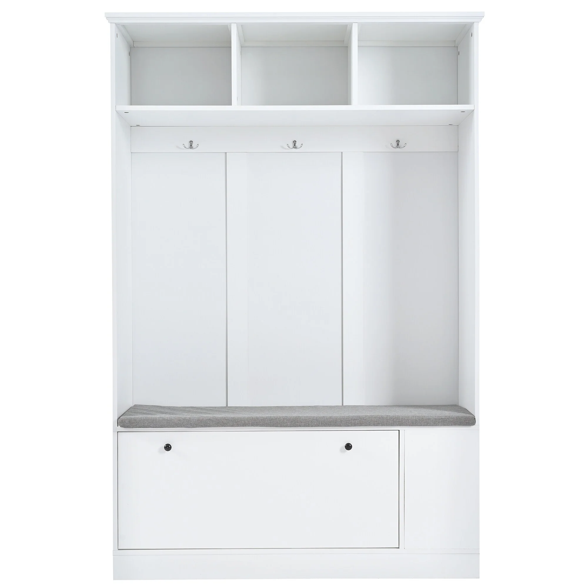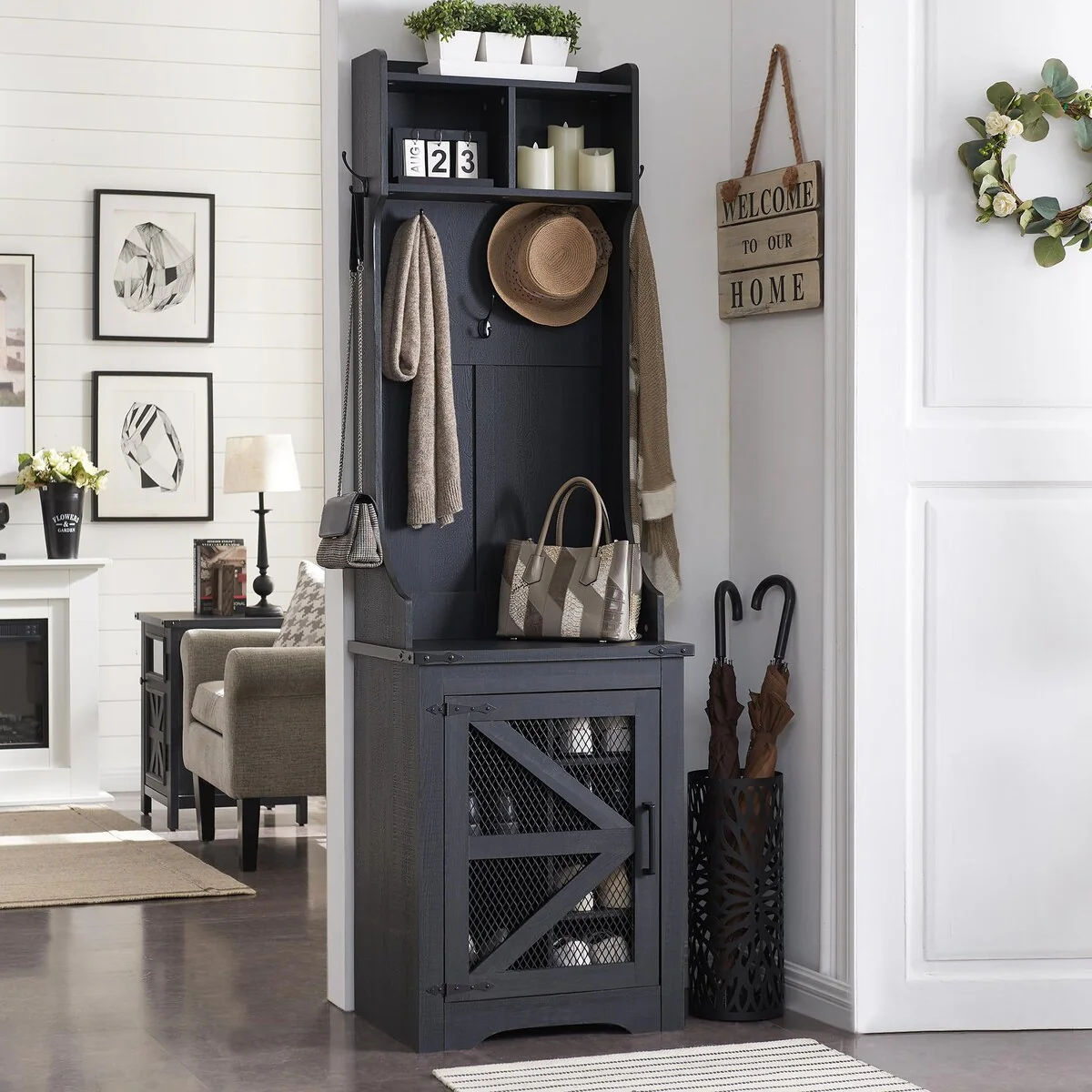 Modern Hall Tree with Shoe Cabinet, Bench and Hooks
