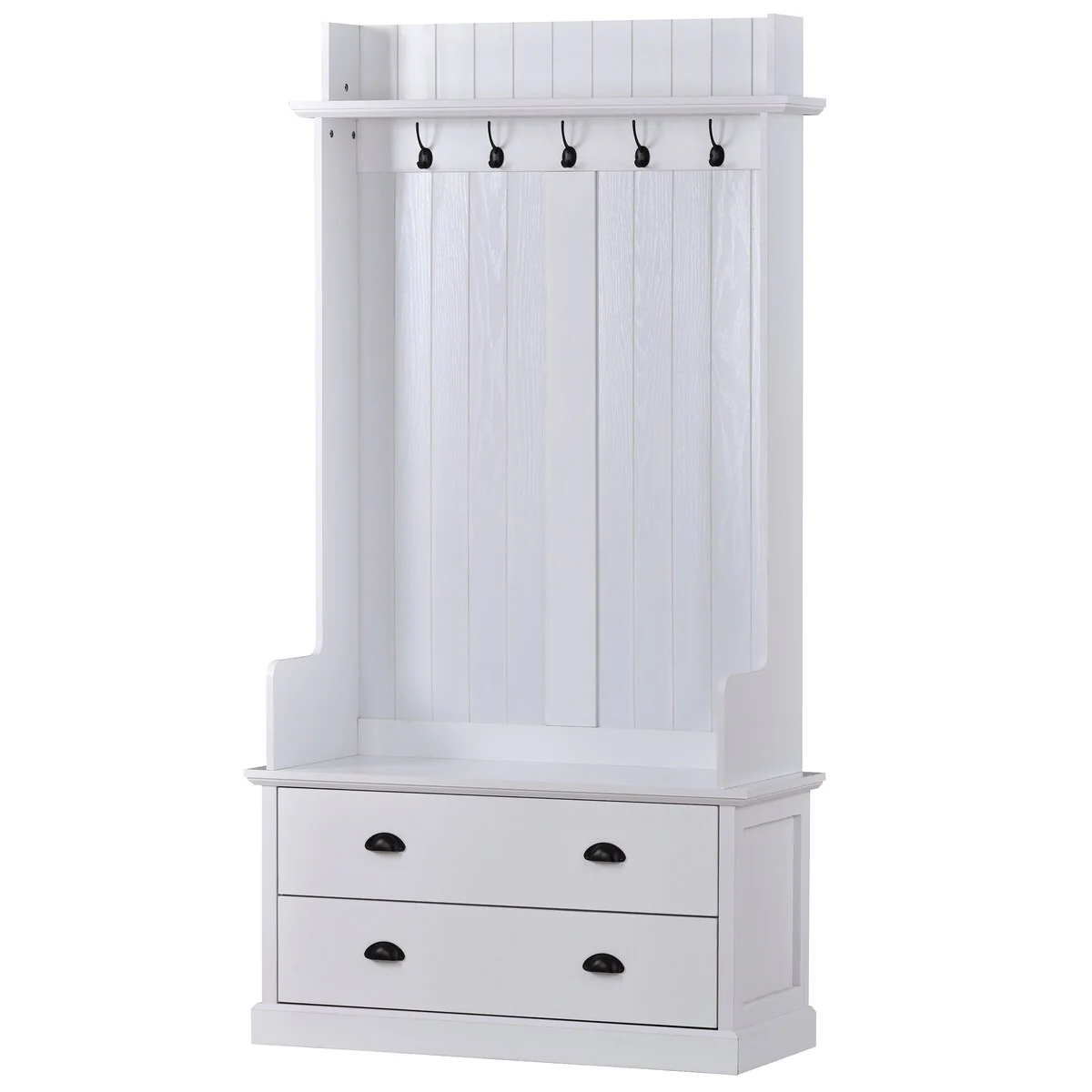 White Hall Tree with 5 Hooks and 2 Drawers