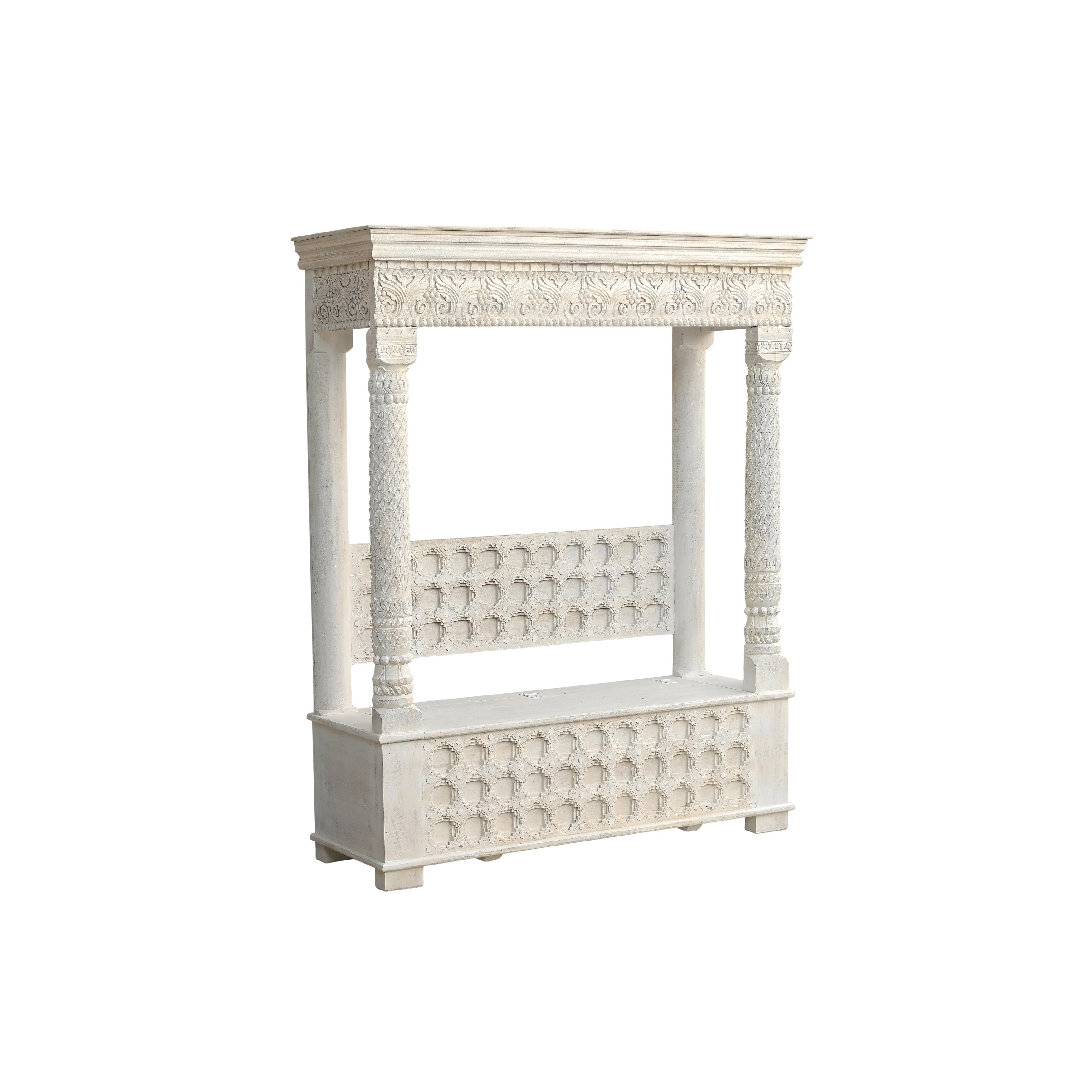 Clara Carved Solid Wood Hall Tree Bench