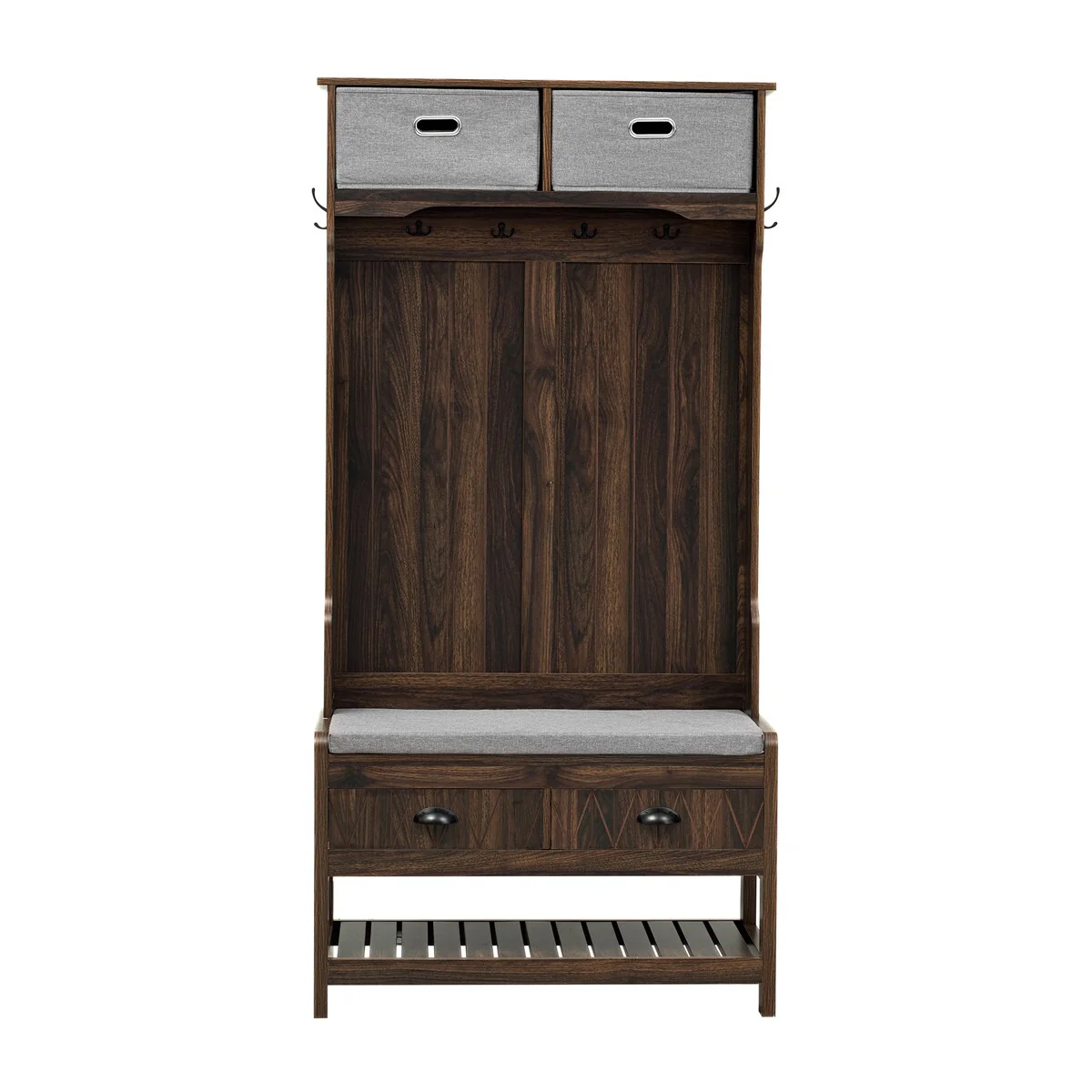 Entryway Bench with Coat Rack and Shelves