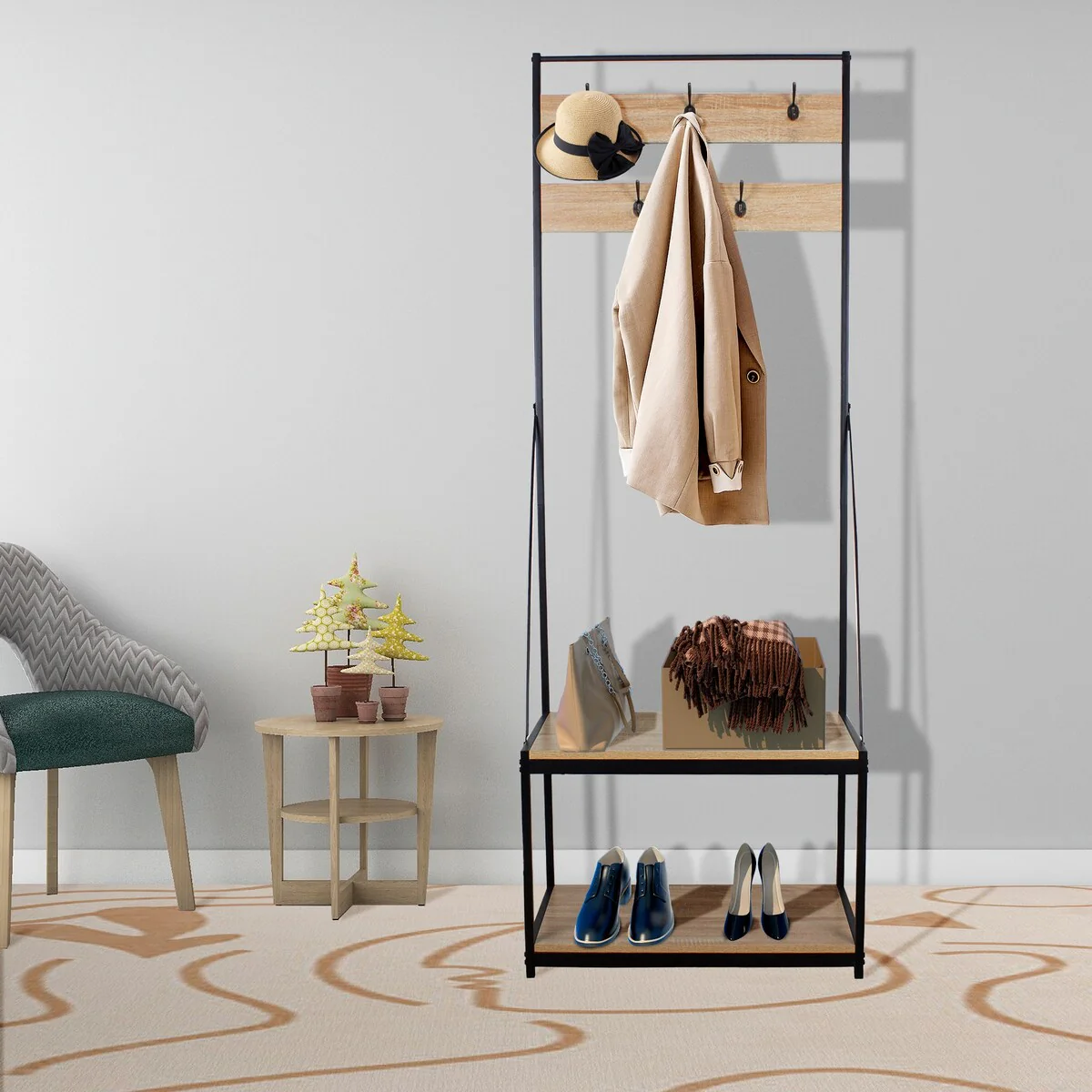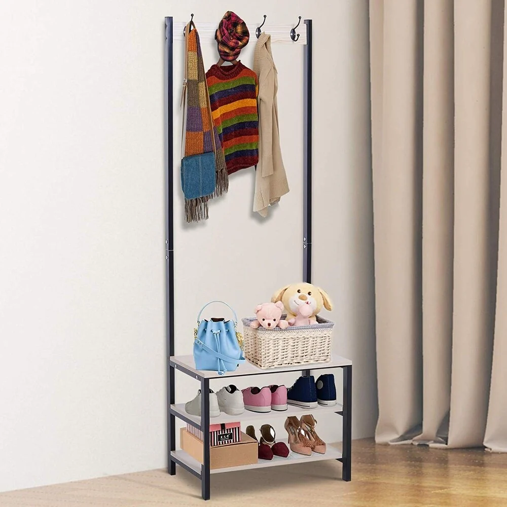 Modern 71.3H Versatile Hall Tree with 3 Hooks & Storage