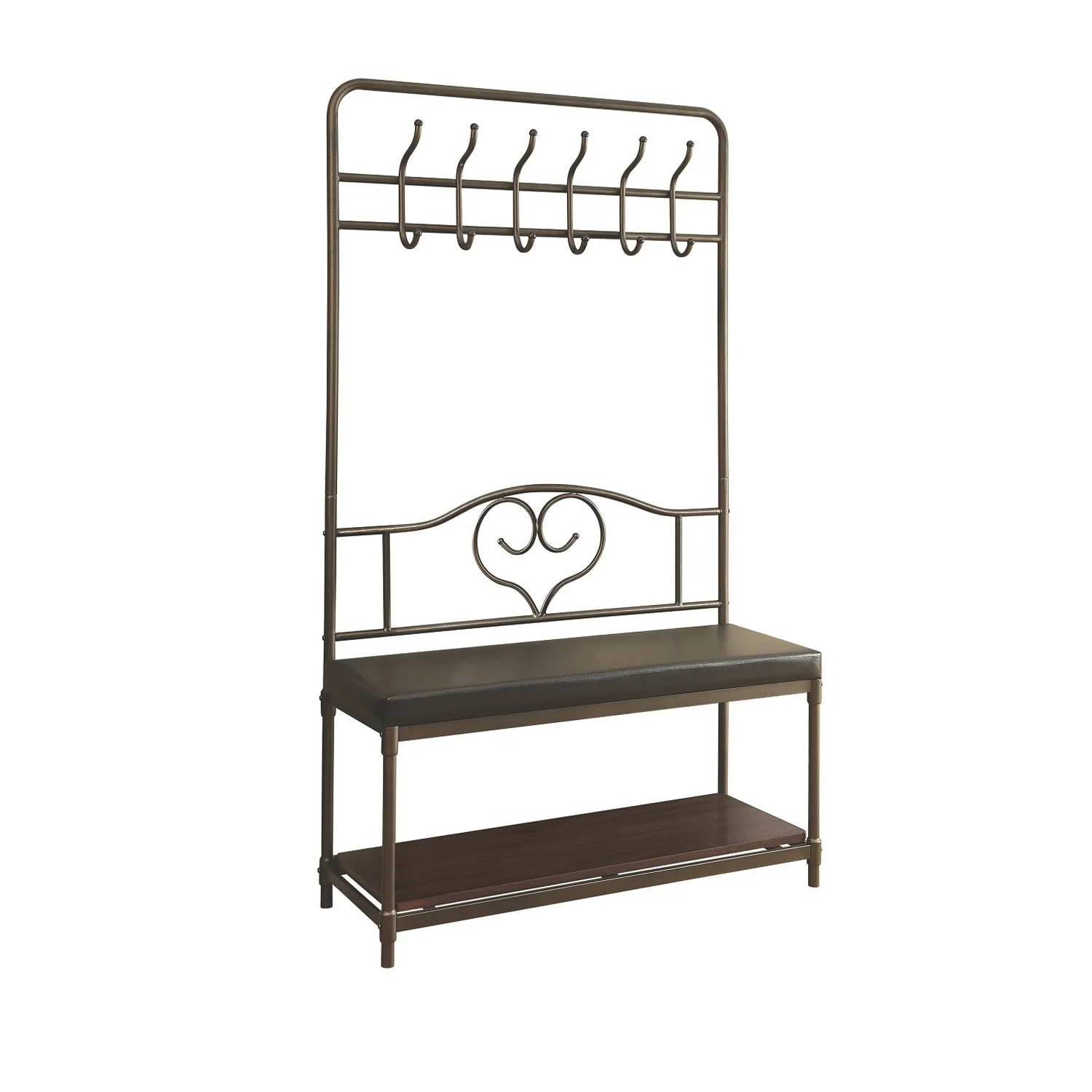 Hall Tree With 6-Hook and Upholstered Bench in Black