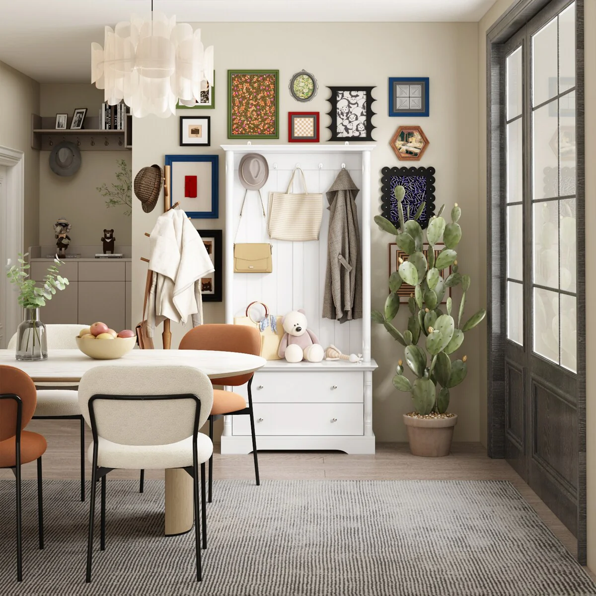 35.4Wx69.1H Classic White Hall Tree - Stylish Foyer Organization