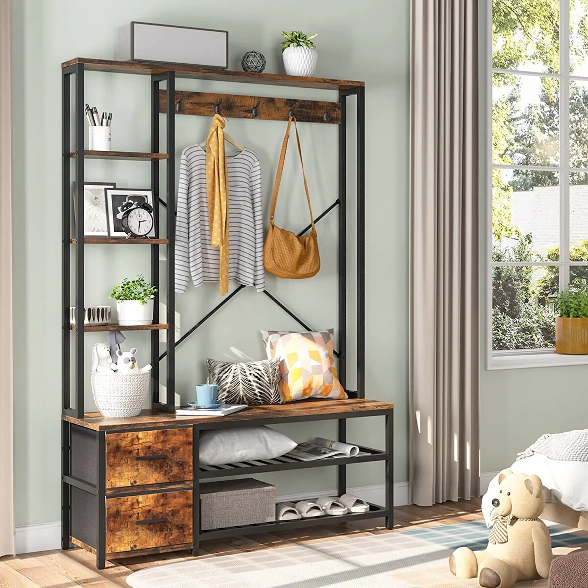 Hall Tree with Storage Shoe Bench for Entryway and Hallway