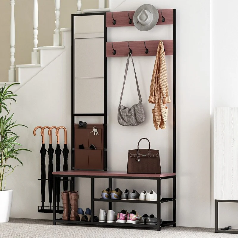 Yaheetech 73 H Hallway Rack Hall Tree with Bench & Shoe Storage