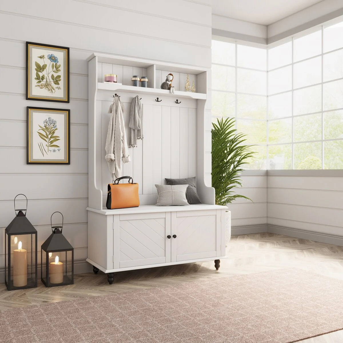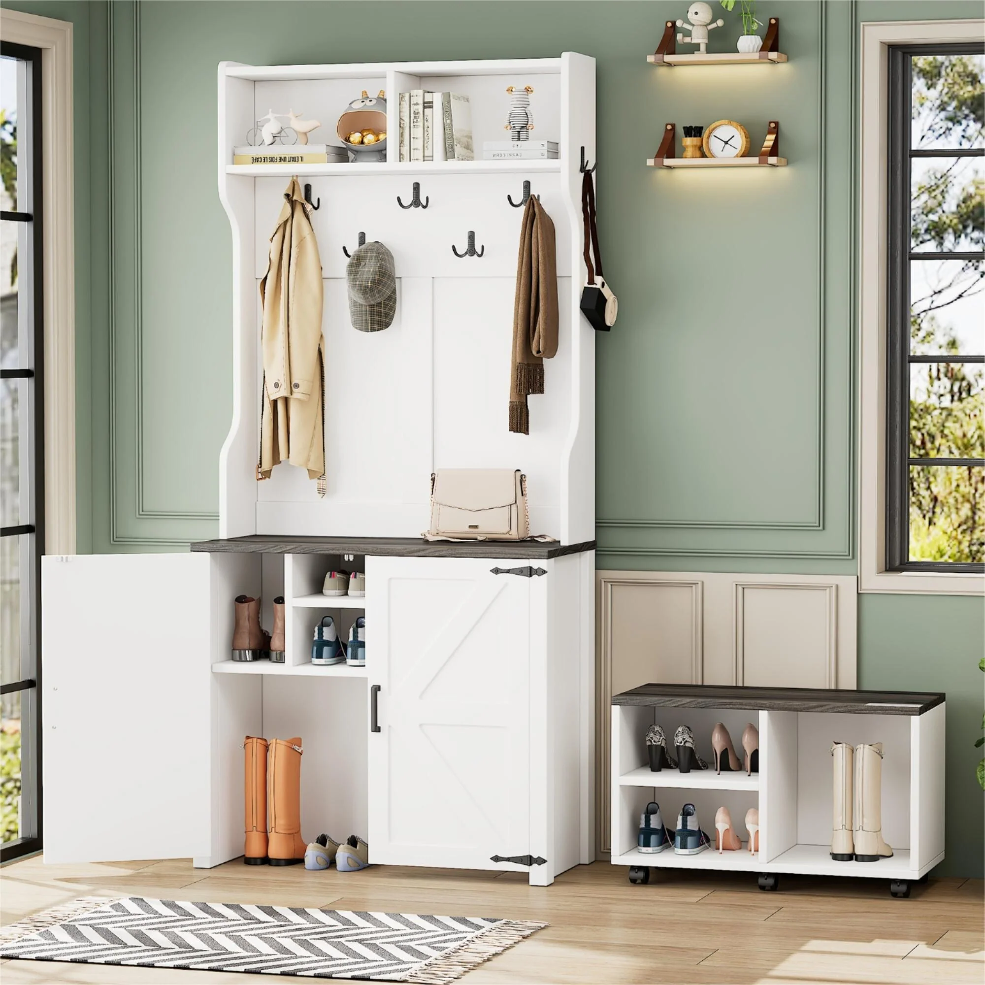 Hall Tree With Bench And Shoe Storage Coat Rack Barn Door