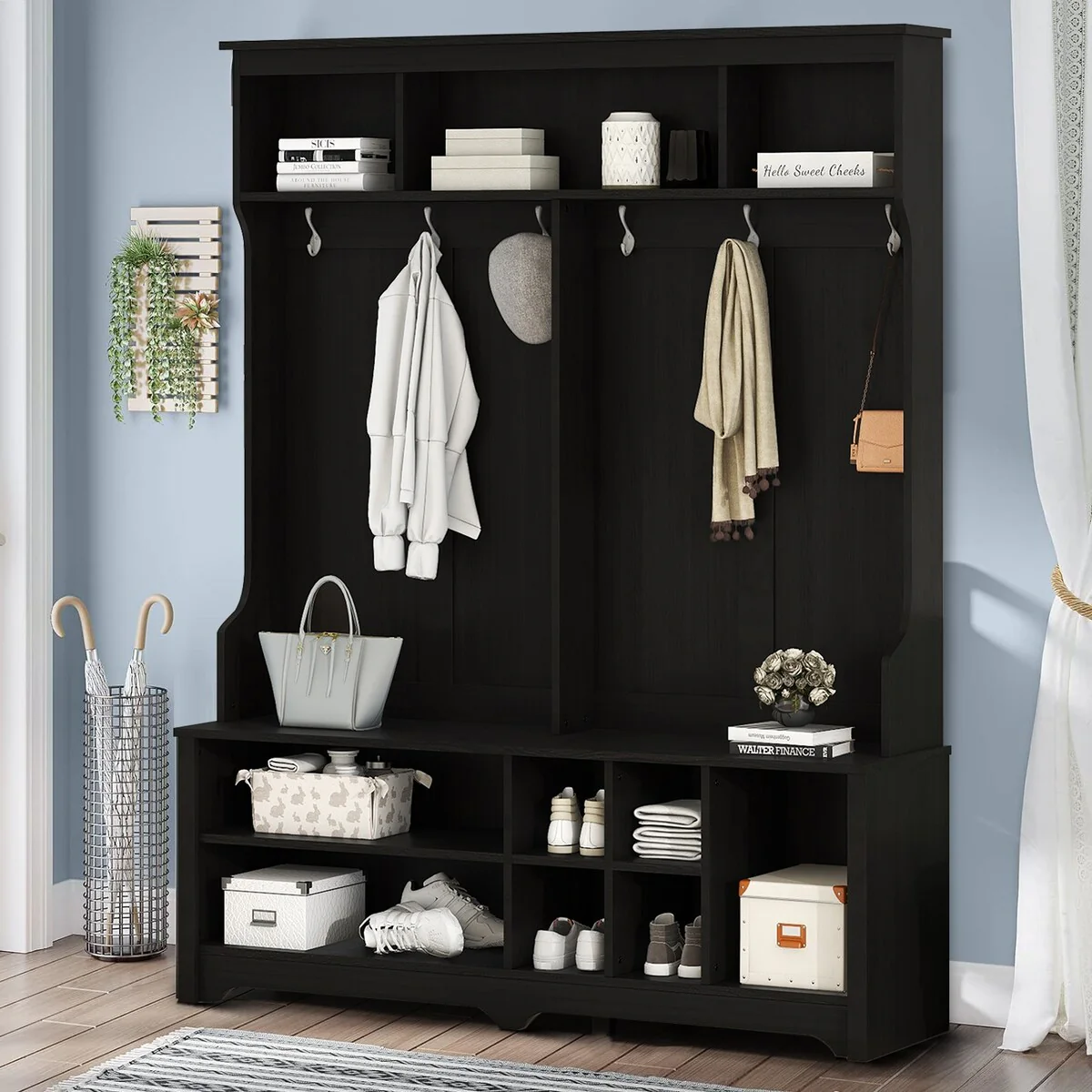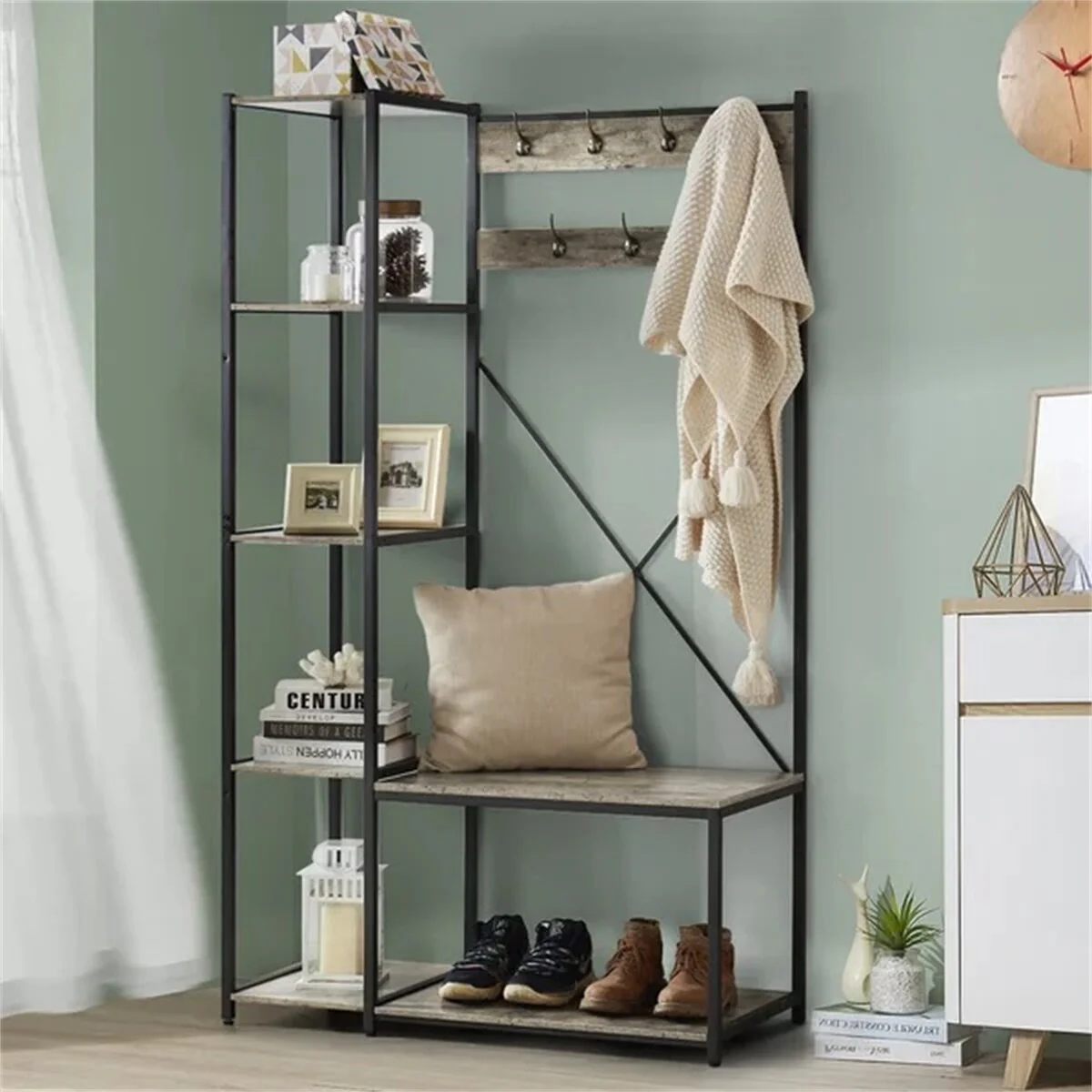 Hall Tree with 4 Hooks for Entrance, Hallway