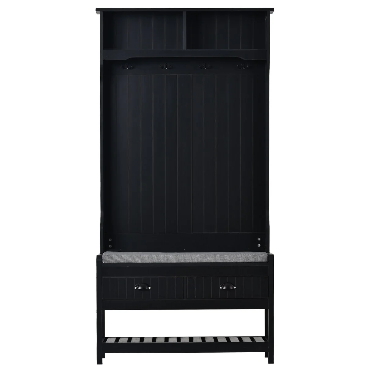 Hall Tree Entryway Bench with Shelves Cabinet and Four Hooks
