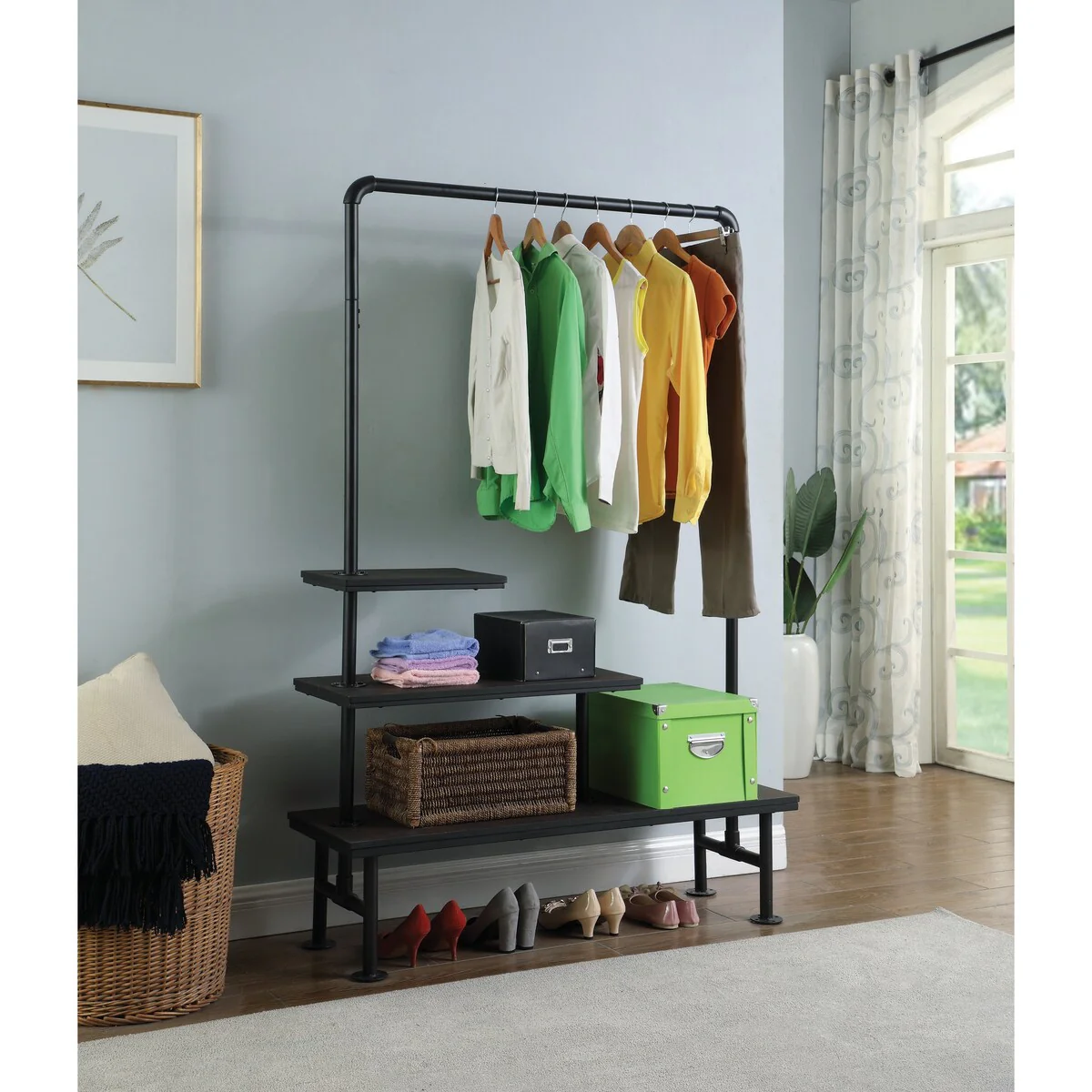 Piotr Black and Rustic 3-shelf Hall Tree