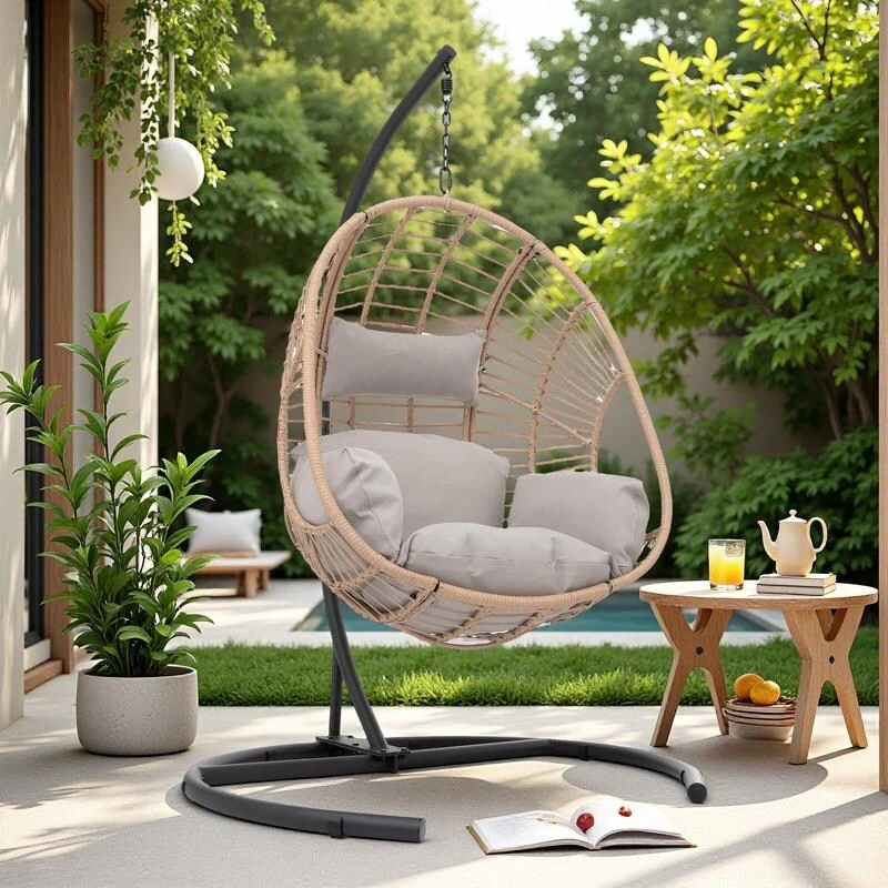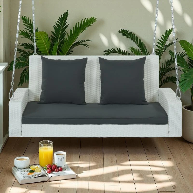 Wicker Outdoor 2-Seater Swing Daybed Porch Swing with Cushion