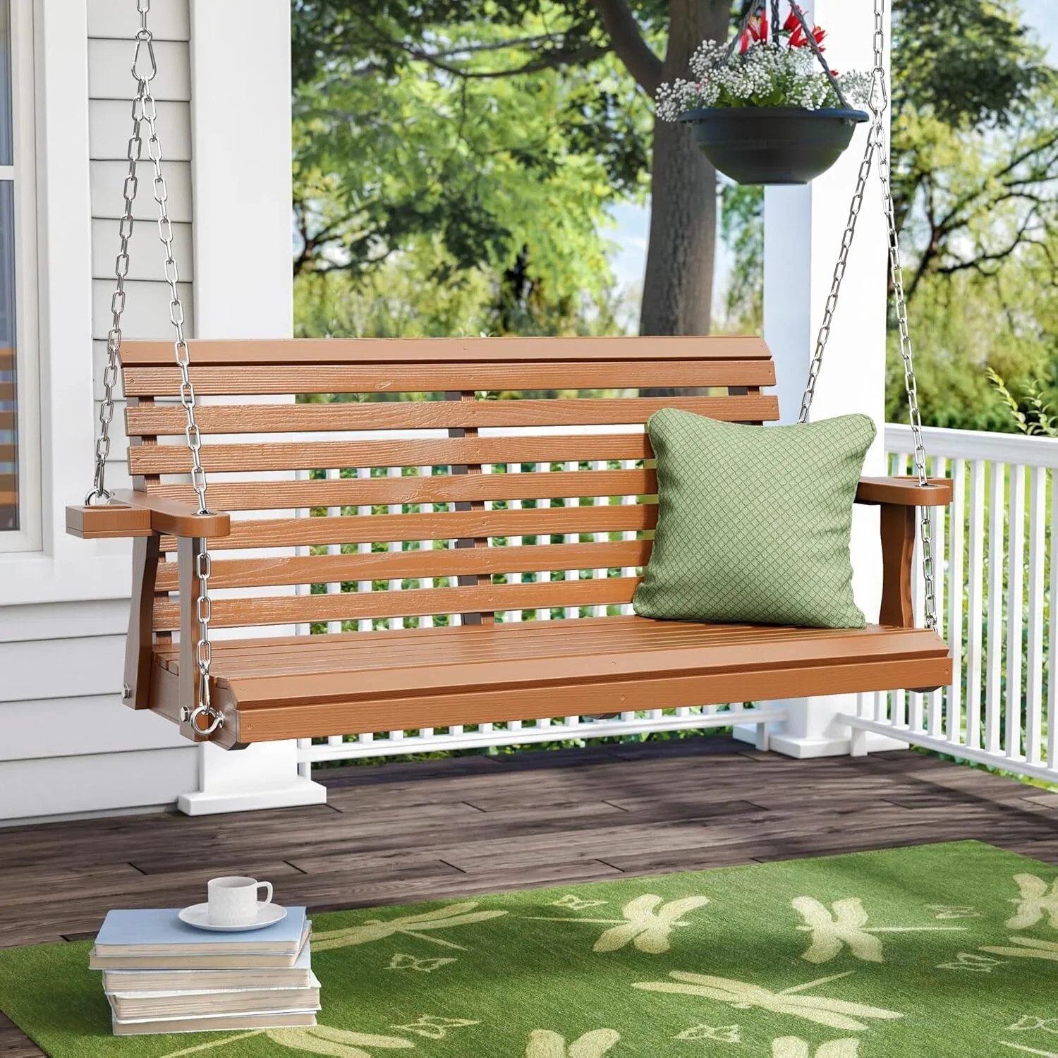 Chic Teak Lutyens Teak Wood Double Outdoor Porch Swing, 66 inch