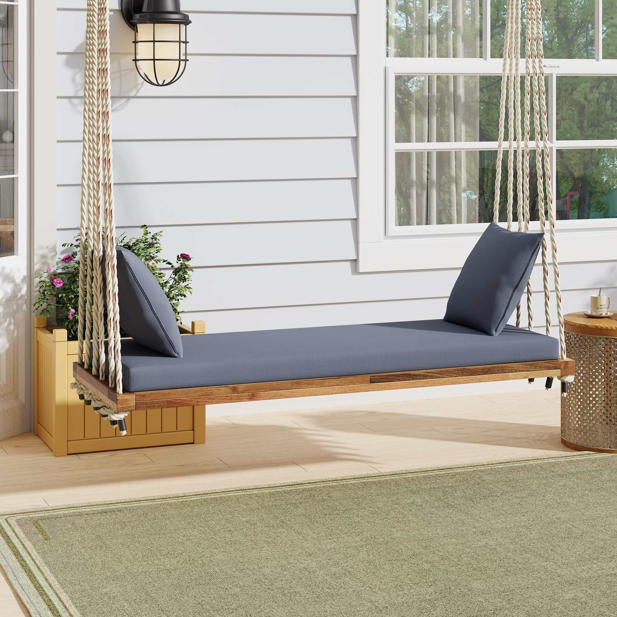 Wood Outdoor Porch Swing Daybed with Cushion&Pillows