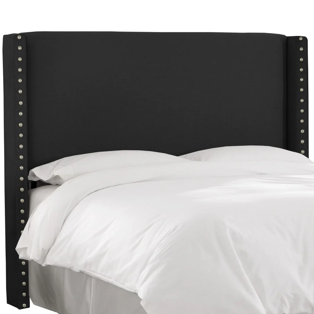 Skyline Furniture Black Linen Nail-button Wingback Headboard