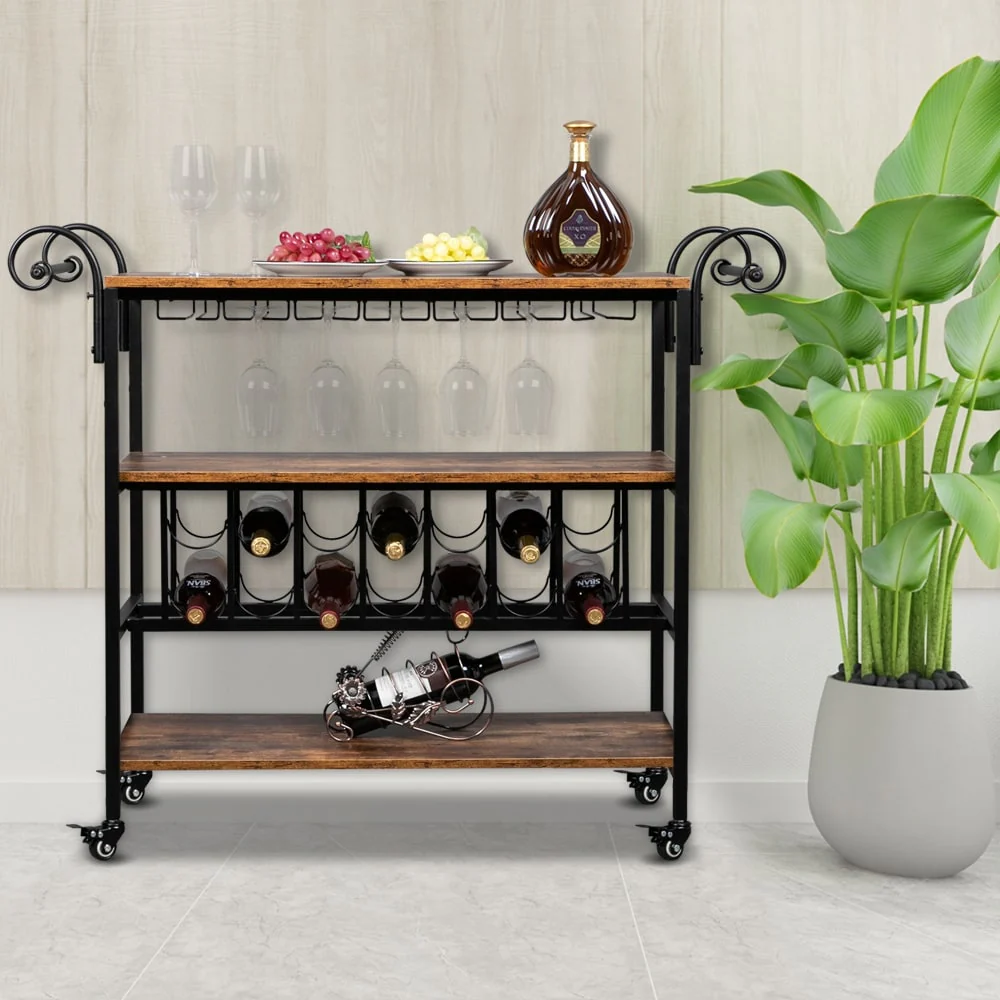 Modern Industrial 3-tier Bar Cart with Wine Rack