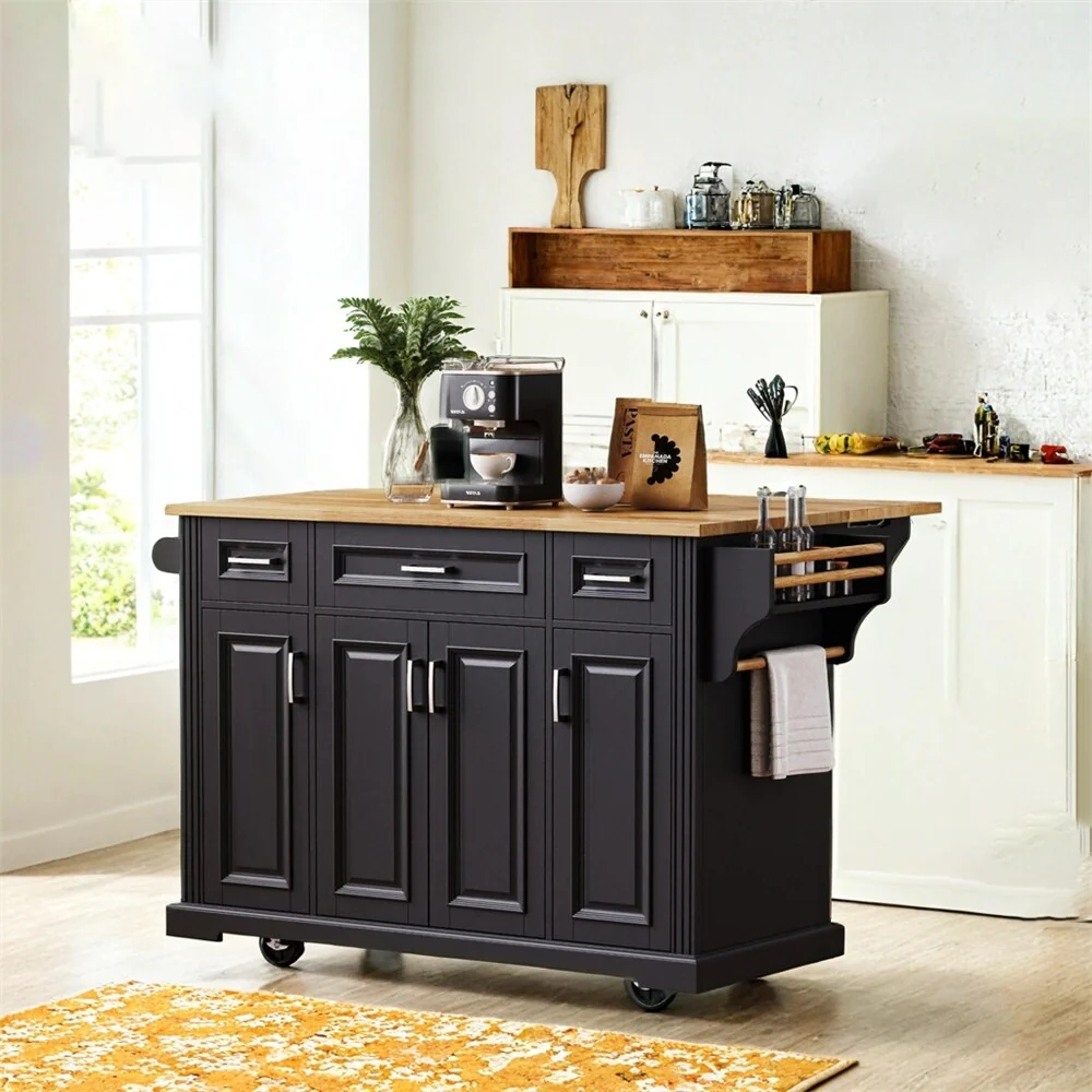 54 Large Kitchen Island w/Drop Leaf,Rolling Kitchen Cart on 4 Wheels