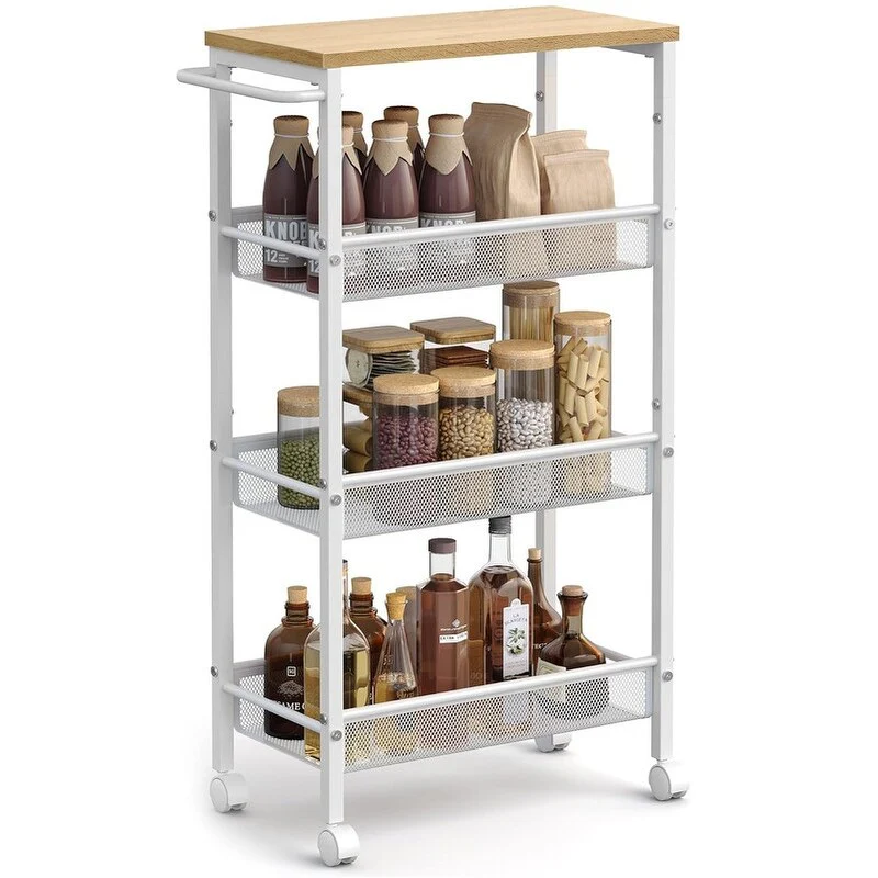 Kitchen Cart with Three Tier Storage and Four Wine Bottle Rack