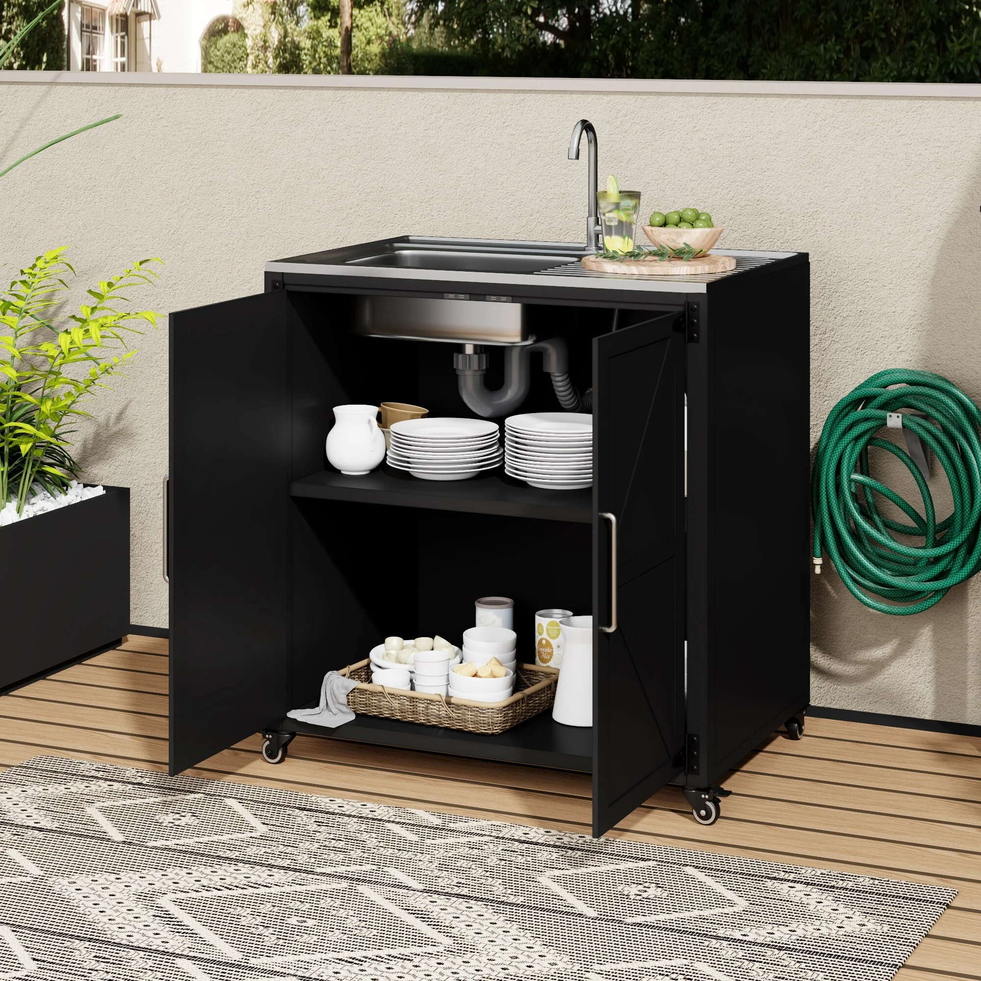 Outdoor Kitchen Island With Storage(no include stool)