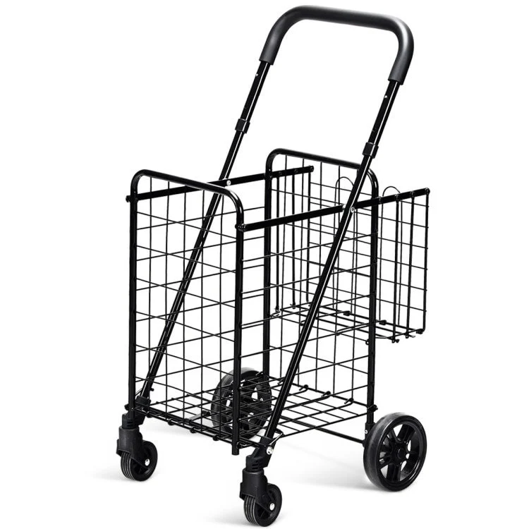 Folding Shopping Basket Rolling Trolley with Adjustable Handle