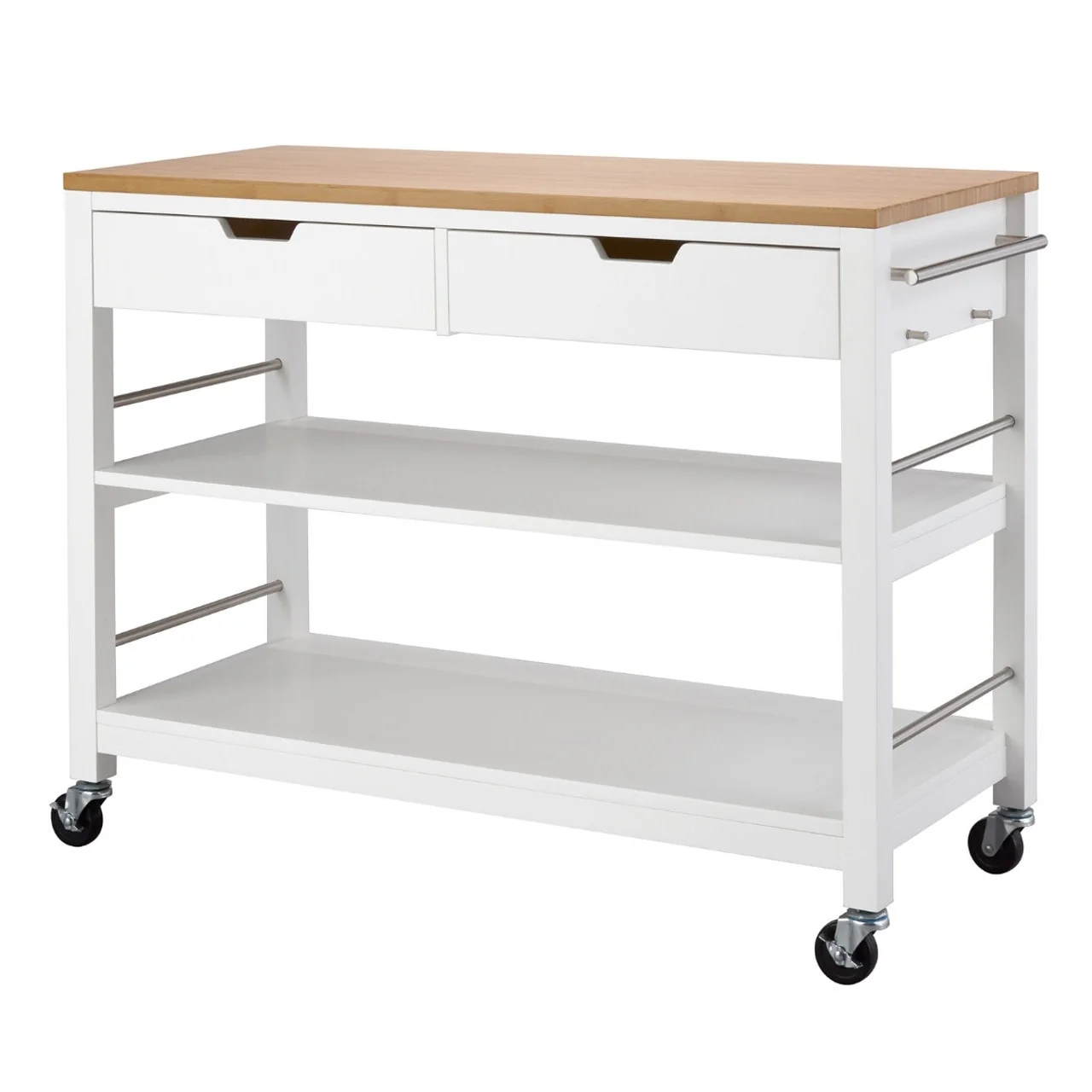 TRINITY Kitchen Island w/ Drawers, White & Bamboo