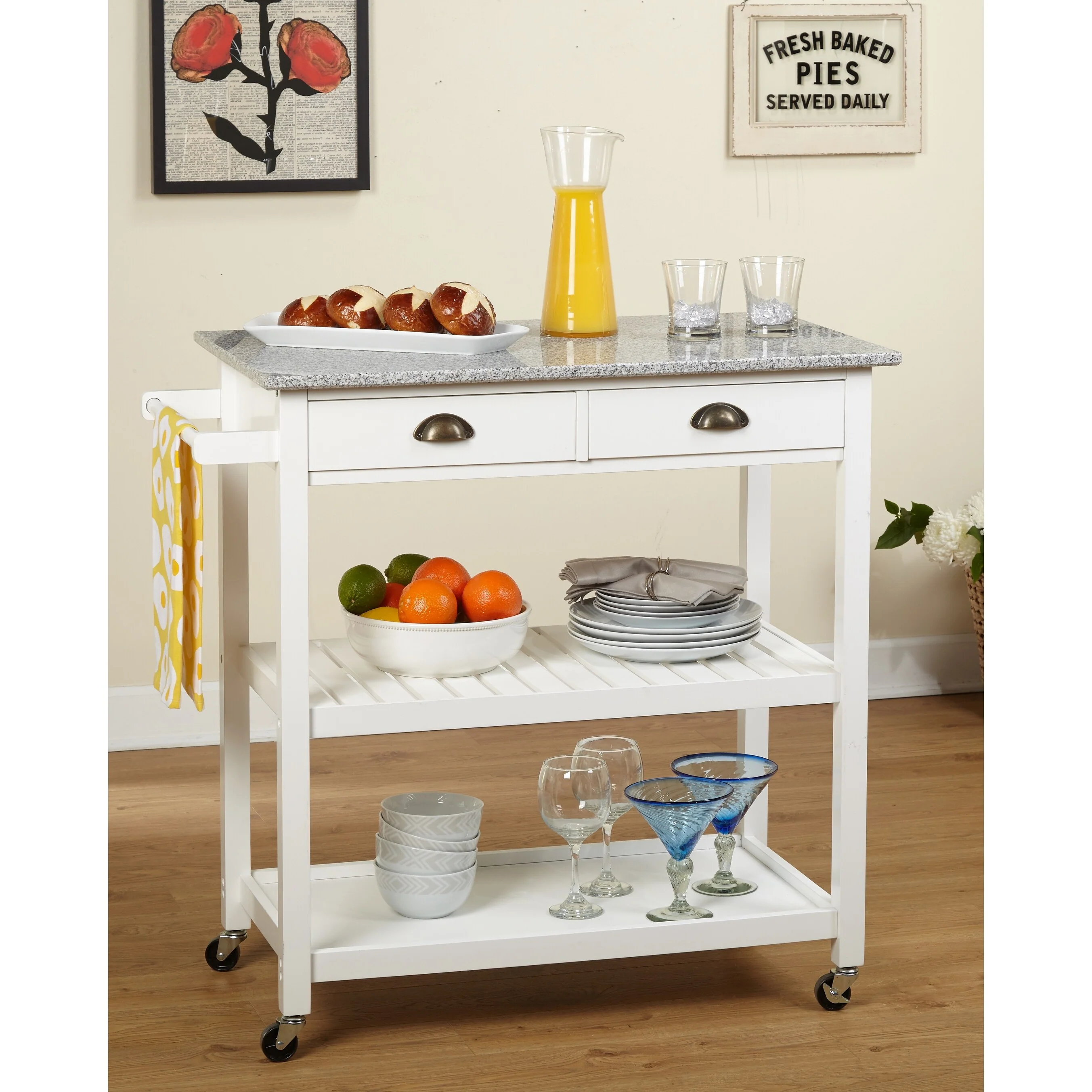 Simple Living Oregon 2 Drawer Rolling Kitchen Island