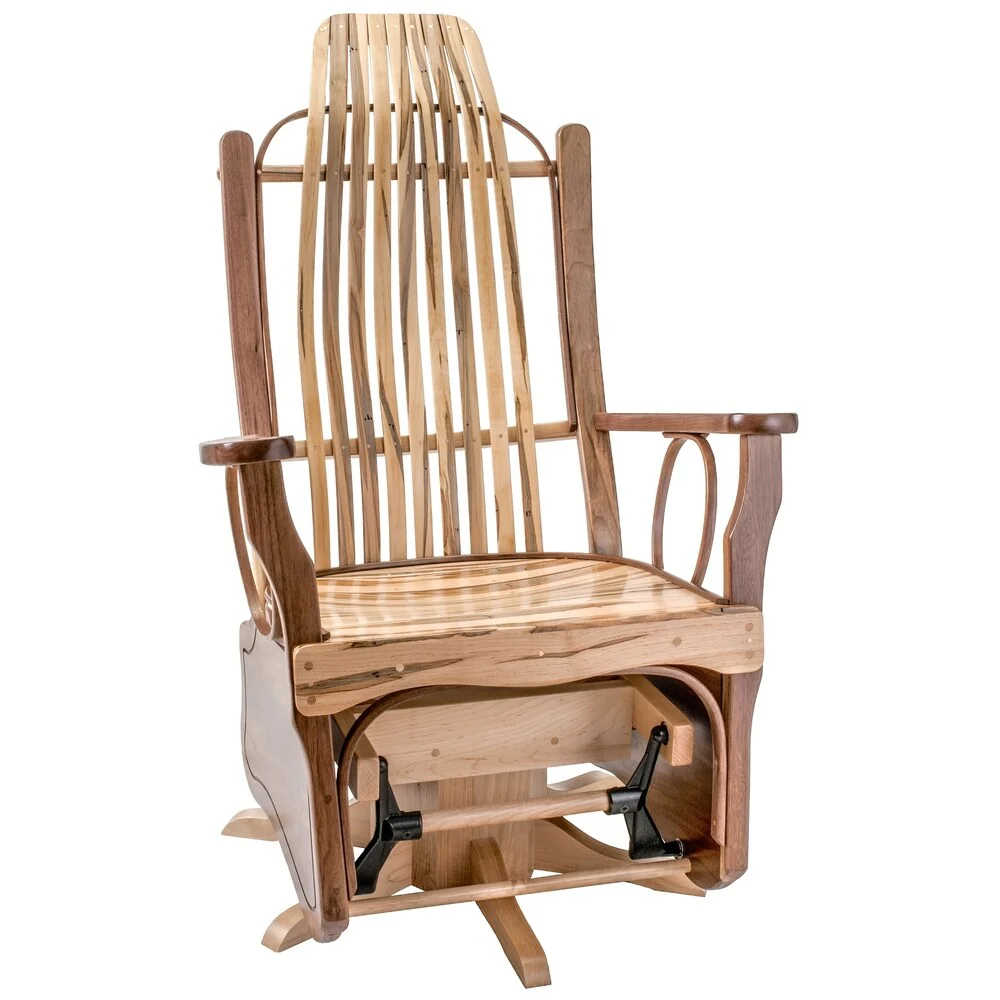 Wormy Maple and Walnut Rustic Flat Arm Swivel Glider
