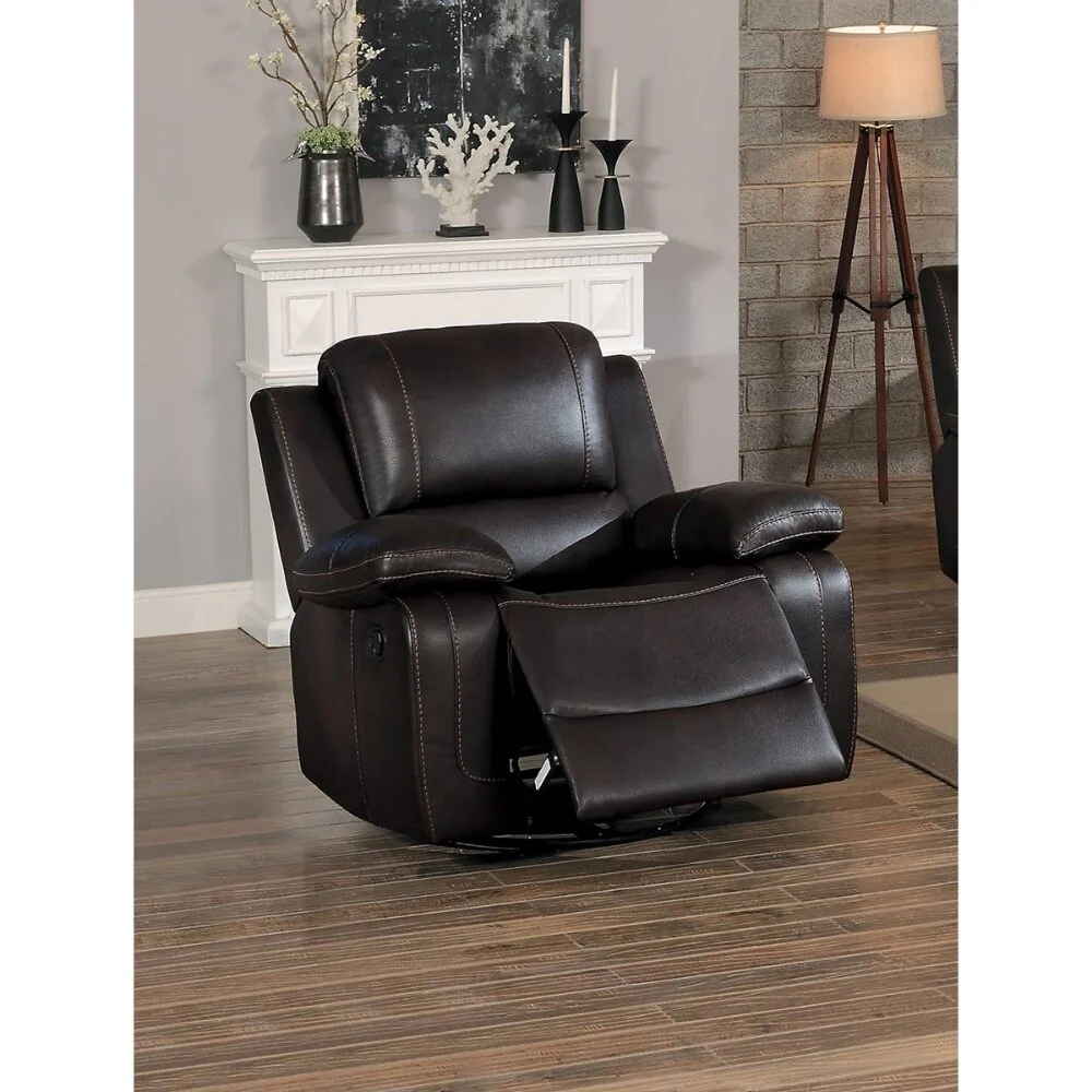 Leather Upholstered Swivel Glider Reclining Chair, Dark Brown